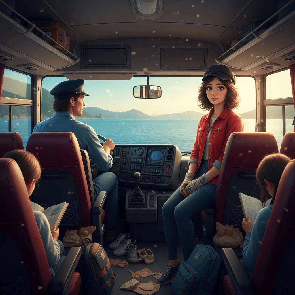 Автор: Михаил ДудинКогда она взбежала по ступенькам, автобус затих. Я замер, всматриваясь в светлое лицо этой девушки. На меня смотрели большие зелёные глаза. Возникла ассоциация с цветом темно-зелёной бутылки лимонада, поднятой к солнцу. Тёмные волосы под бретонской кепкой, слегка вьющиеся, опускались на плечи. Тёмно-синие легинсы подчёркивали стройность её фигуры, а красная летняя курточка с короткими рукавами и светлые вязаные перчатки с вырезами для пальцев придавали ей восхитительное очарование.
