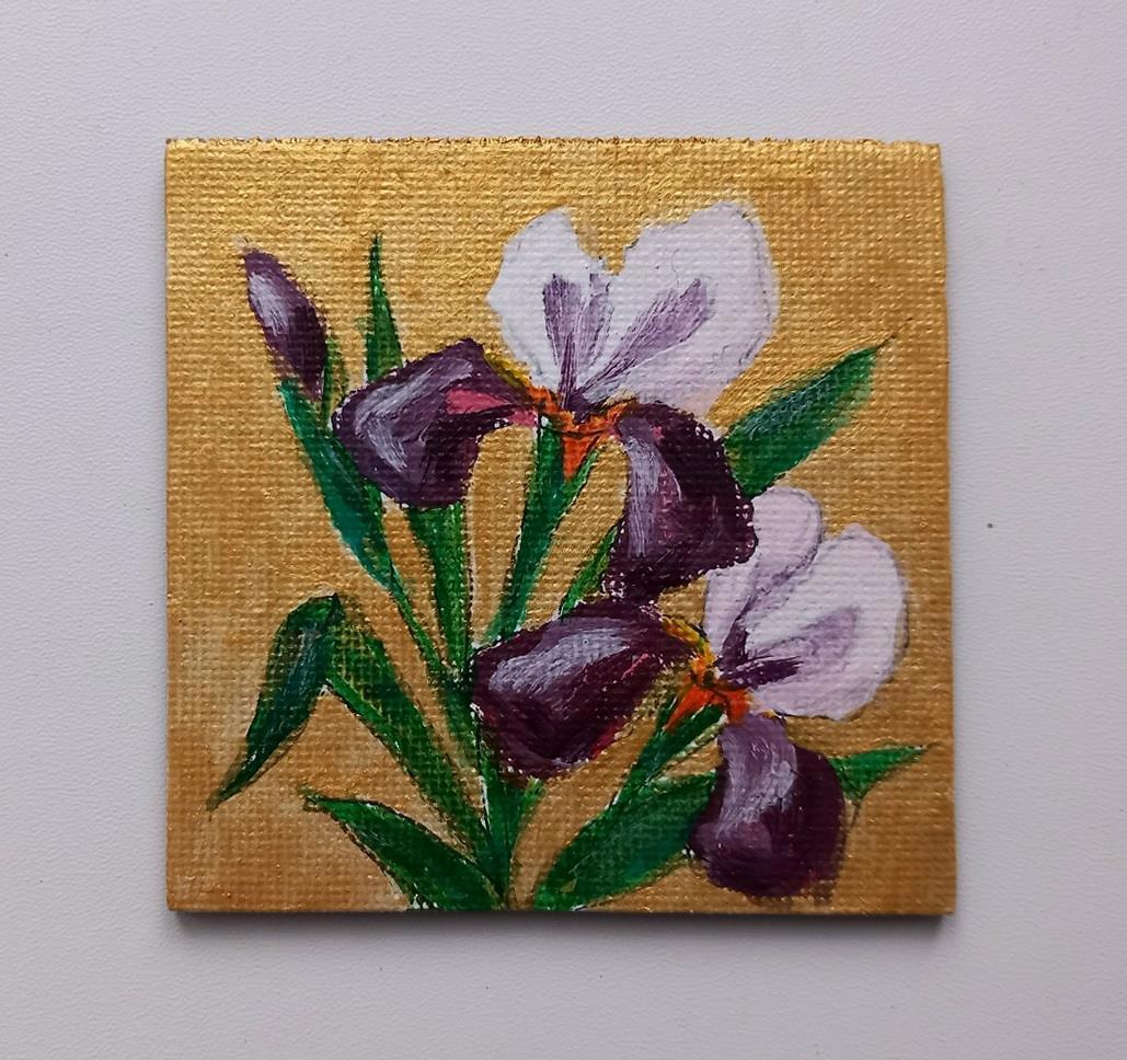 Рисунок чёрным линером, раскрашиваю акриловыми красками, в том числе золотой.