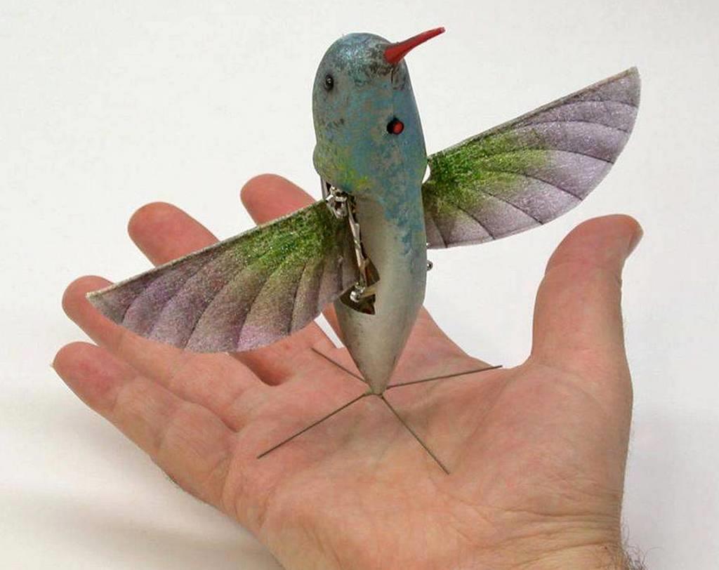Однако на сегодня выяснилось, что «Лаборатория интеллектуальной робототехники» компании «Lockheed Martin» результат пяти лет своего упорного труда может с чистой совестью выбросить в мусорный ящик, потому что они проиграли соревнование компании «AeroVironment», которая создала беспилотник с другим экзотическим движителем – с махолётом. Хреновину размером с хорошего воробья обозвали «Nano Hummingbird». Вдохновителем выступили птички из отряда «колибри». Вот эта штука: