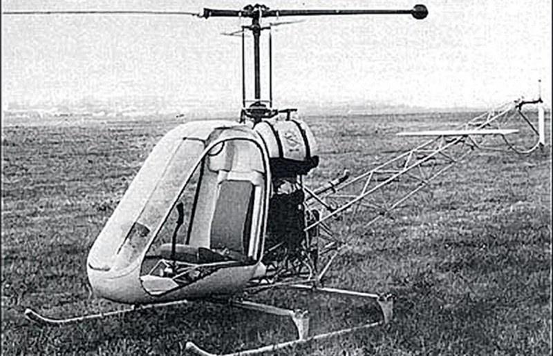 Хотя кое-где можно встретить утверждения, что он был создан исключительно для испытания стеклопластиковых лопастей, но я думаю, что лопасть вполне можно было испытать и на более традиционной машине. А вот на этой фотографии показан ещё один вариант этой машины, уже снабжённой какой-никакой кабиной для пилота: