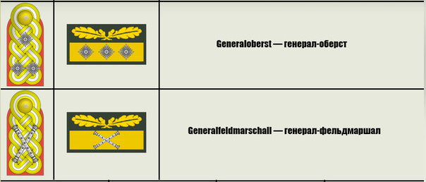 В Германии род войск традиционно обозначался соответствующими цветами окантовок и петлиц, головных уборов и обмундирования и так далее. Они достаточно часто менялись.