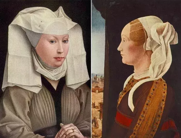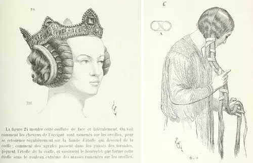 Женская прическа в позднее средневековье несколько изменилась. Девушки стали укладывать косы над ушами в так называемый «бараний рог». Уши при этом были закрыты, а шея открыта.