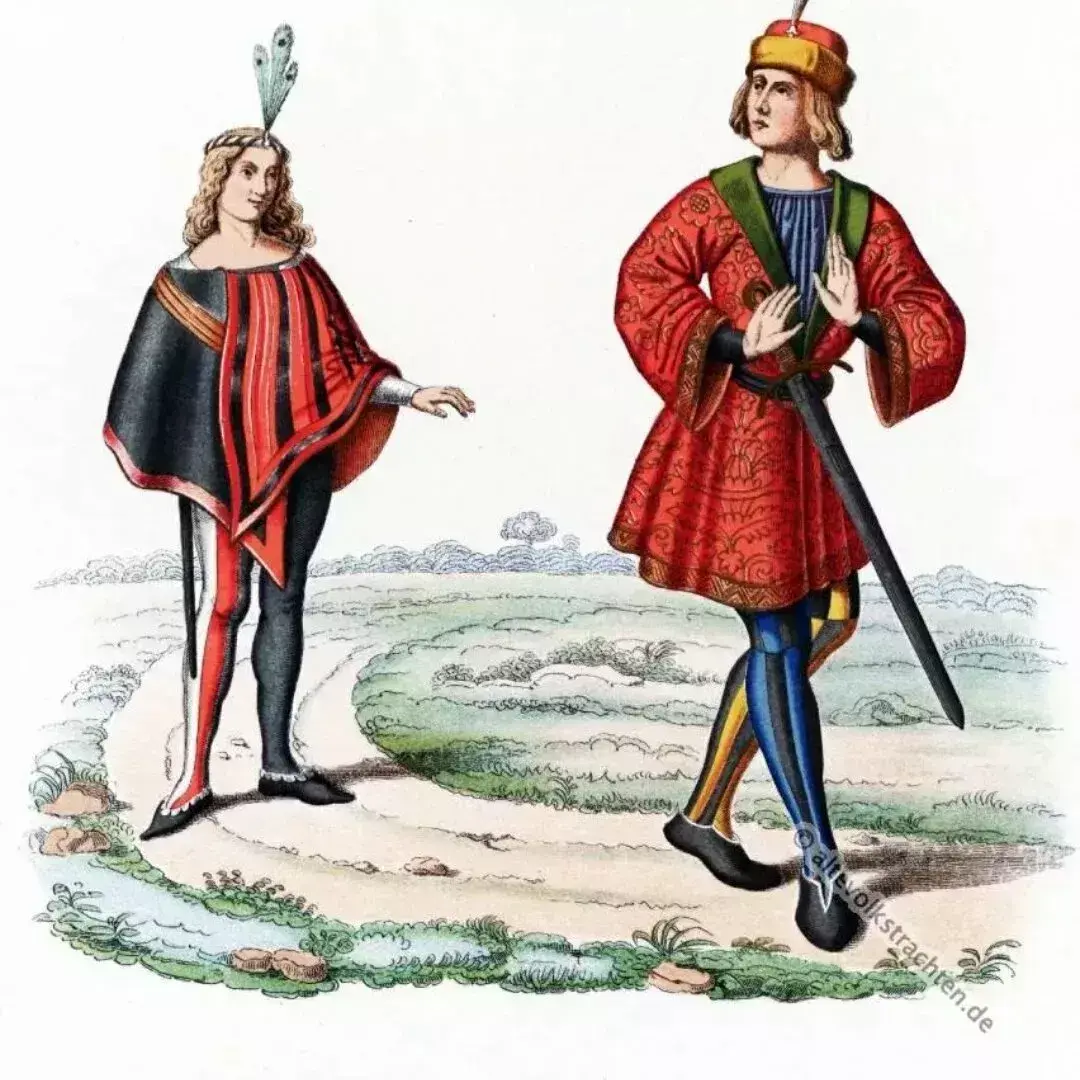 В начале XIV в. у знати стал модным верхний кафтан — «котарди». Котарди был узким, доходившим до середины бедер, с самыми разными рукавами — и узкими, и широкими. Вокруг бедер застегивался декоративный пояс. Впереди могла быть застежка.