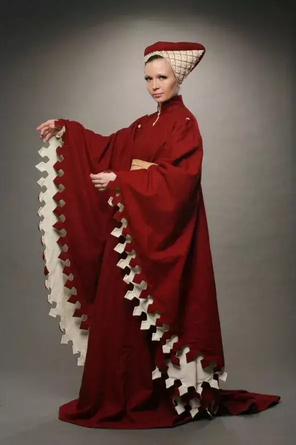 К середине XIV в. появился «жакет». Он был без рукавов или с откидными рукавами, узкий, подчеркивающий талию.