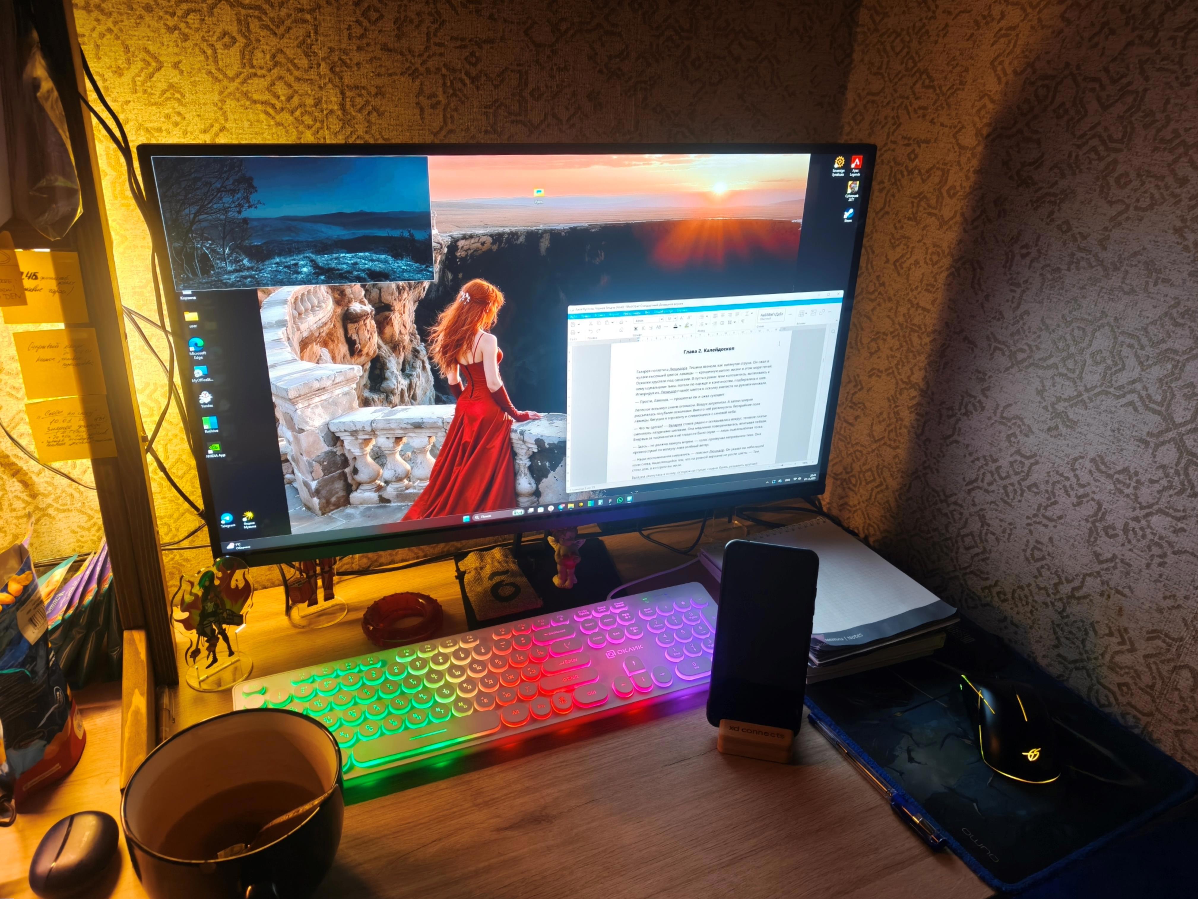 Недавно обновил комп, теперь так выглядит рабместо. Раньше тут стоял ноут, а полка нависала сверху.