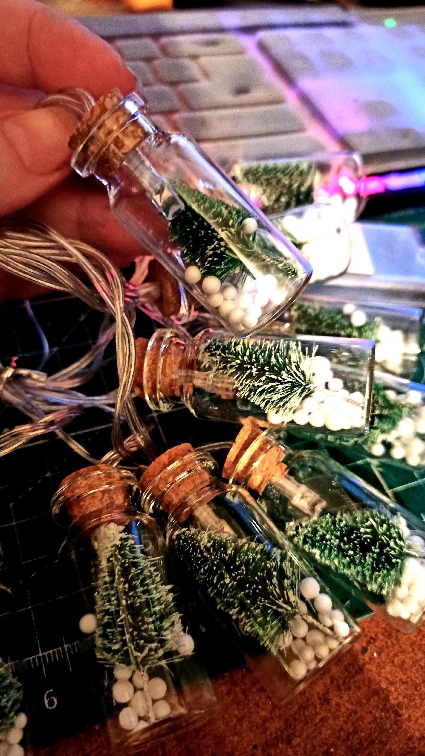 Автор: Кристина Орловская (Sayvaris)Привет всем! Сегодня в «Фикс-прайсе» я нашла вот такую гирлянду. Она состоит из светодиодов и стеклянных бутылочек. И у меня появилась очень интересная идея: извлечь из бутылочки ёлку и эти пенопластовые шарики, а вместо них поселить в каждую бутылочку миниатюру, красиво украсить и закрепить УФ-смолой. Так мы получим уникальную гирлянду! Работа будет долгосрочной, планирую закончить только к следующему Новому году.