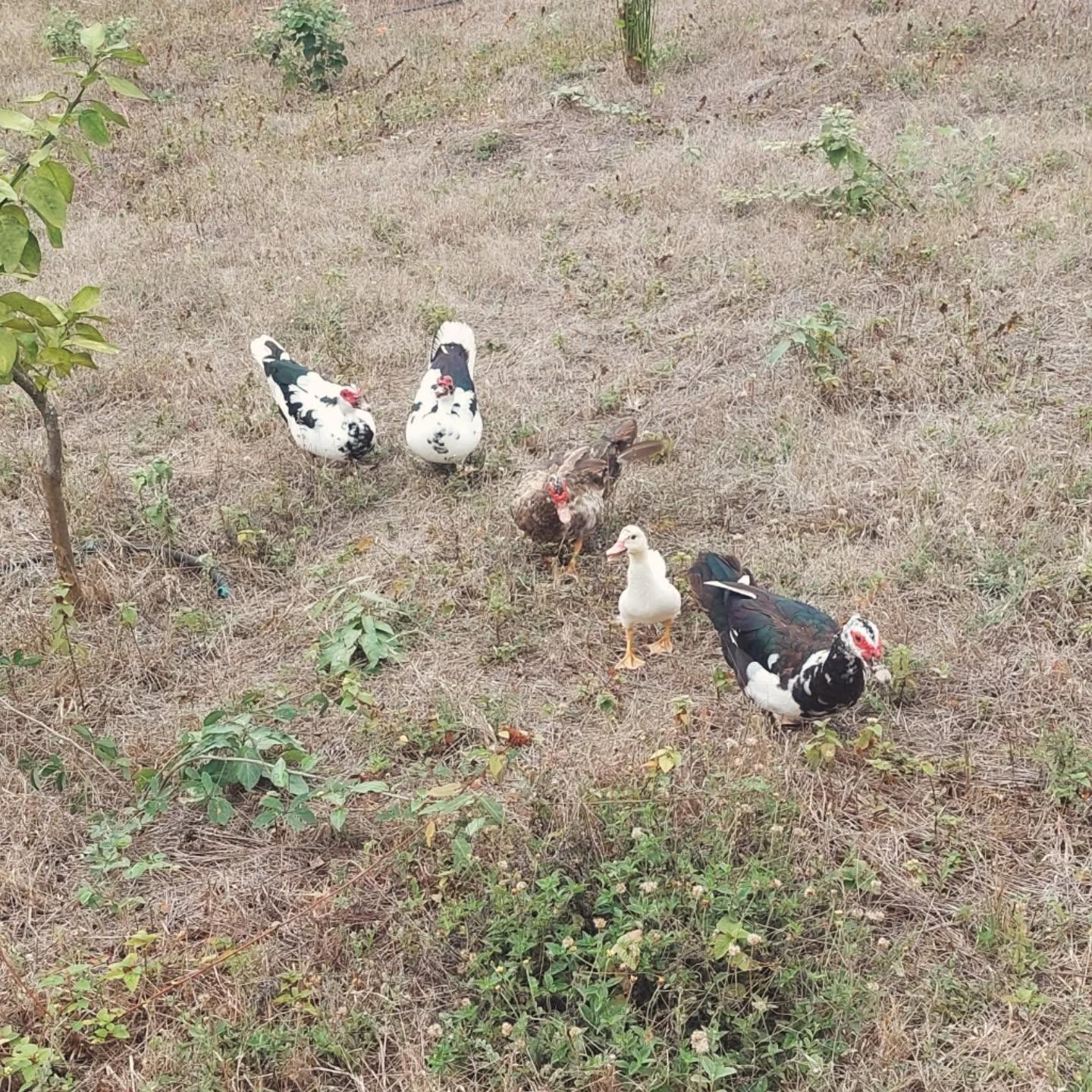 Когда подходит время кормежки взрослые перелетают забор, мелкий отыскивает дырку в заборе. И дружно идут разбираться, почему пока не кормят.