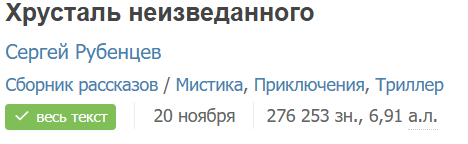 Далеко ходить не будем и возьмём в пример мой сборник рассказов "Хрусталь неизведанного".