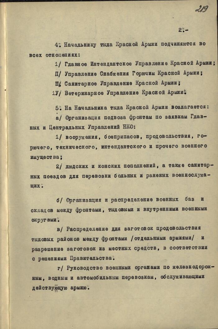 Первый же приказ, упомянутый в тексте отчета, № 361, датирован 18 декабря 1941 г.,. Им ставились задачи начальникам тыла фронтов и армий, а также объявлялась первая «Инструкция по сбору и эвакуации трофеев, вооружения и негодного имущества». «Инструкция» содержала три раздела: