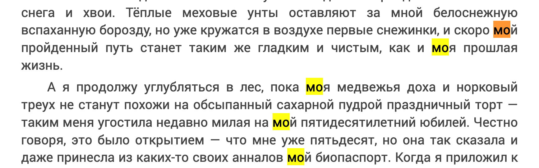 От стилистики впечатление двоякое. С одной стороны — понравилась образность в начале повести. С другой — многовато притяжательных местоимений, кое-где их точно можно было не добавлять.