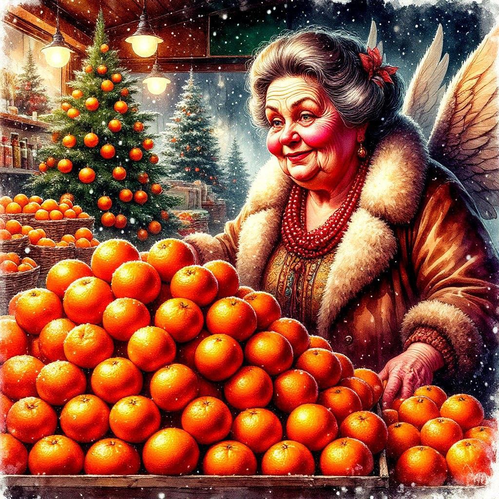 От тёти Любы всегда пахло зимой — резковатым запахом снега, растворимым кофе «три в одном», который на рынке не пили — им заправлялись в мороз каждые полчаса, — и, конечно, мандаринами. Теми самыми, что только в конце декабря пахнут настоящим, простым и понятным чудом. Этот аромат был таким густым и сладким, что, казалось, висел в воздухе видимым облаком, притягивая к лотку заворожённых прохожих, словно детей из сказки — к пряничному домику.