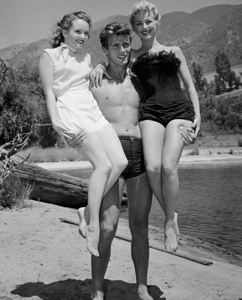 Клинт Иствуд держит на руках Олив Стерджесс и Дэни Крэйн, Сан-Франциско, 1954 год.