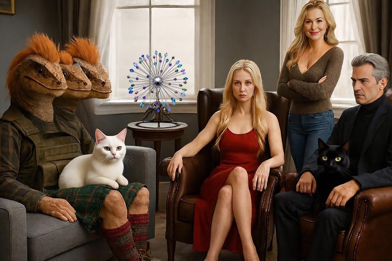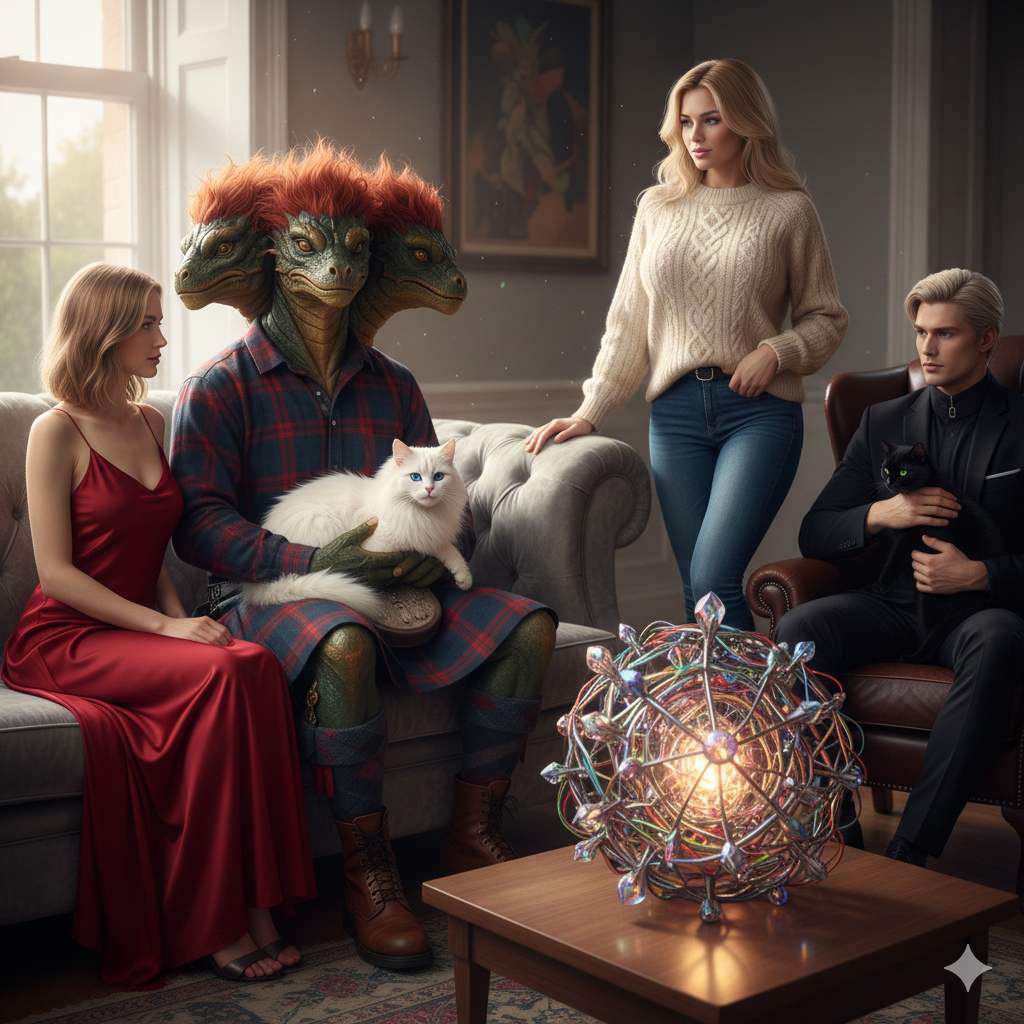 Несси, восседая на диване, занимал пространство с размахом истинного дракона. Его могучие ноги в килте и добротных ботинках были широко расставлены, а пушистый белый кот Деймос сладко спал у него на мощном колене, свернувшись в снежный комок. На столе перед каждым стояли напитки: у Жанны — кофе в крошечной чашке, у Орлова — чай без всего, у Несси — что-то мутно-зеленое в высоком бокале, от чего слегка пощипывало в носу даже на расстоянии.