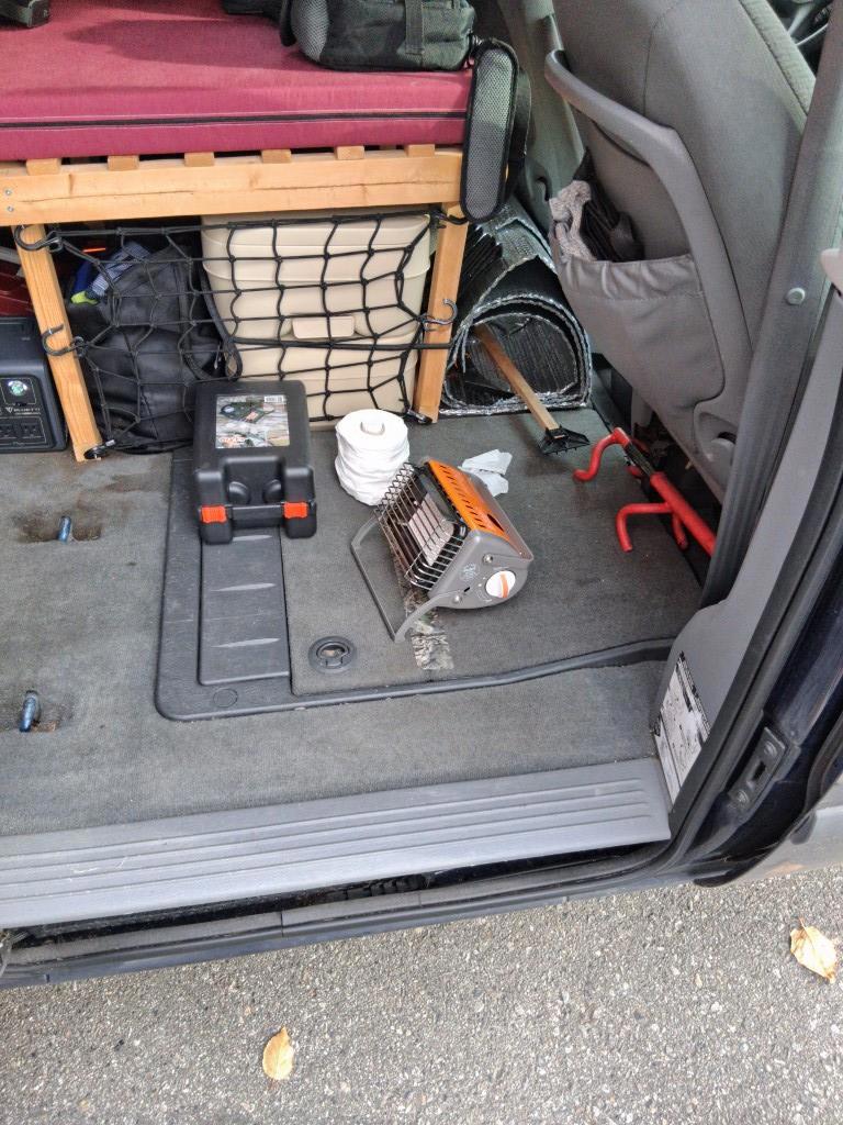 Для отопления в холода он использует газовый нагреватель, чтобы не гонять мотор.