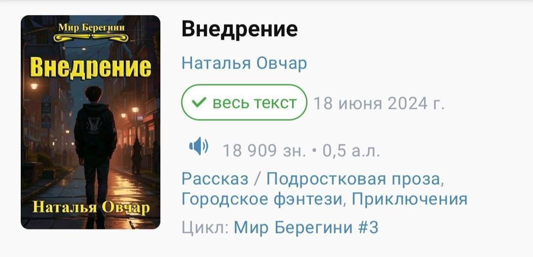 Автор: Наталья ОвчарМурчу от удовольствия объевшейся форелью кошечкой. Неожиданно получила рецензию от Натальи Грейш на рассказ "Внедрение" и поняла, что мне стыдно. Стыдно, что есть хороший задел на третий том из серии "Берегиня", а у меня и второй не дописан