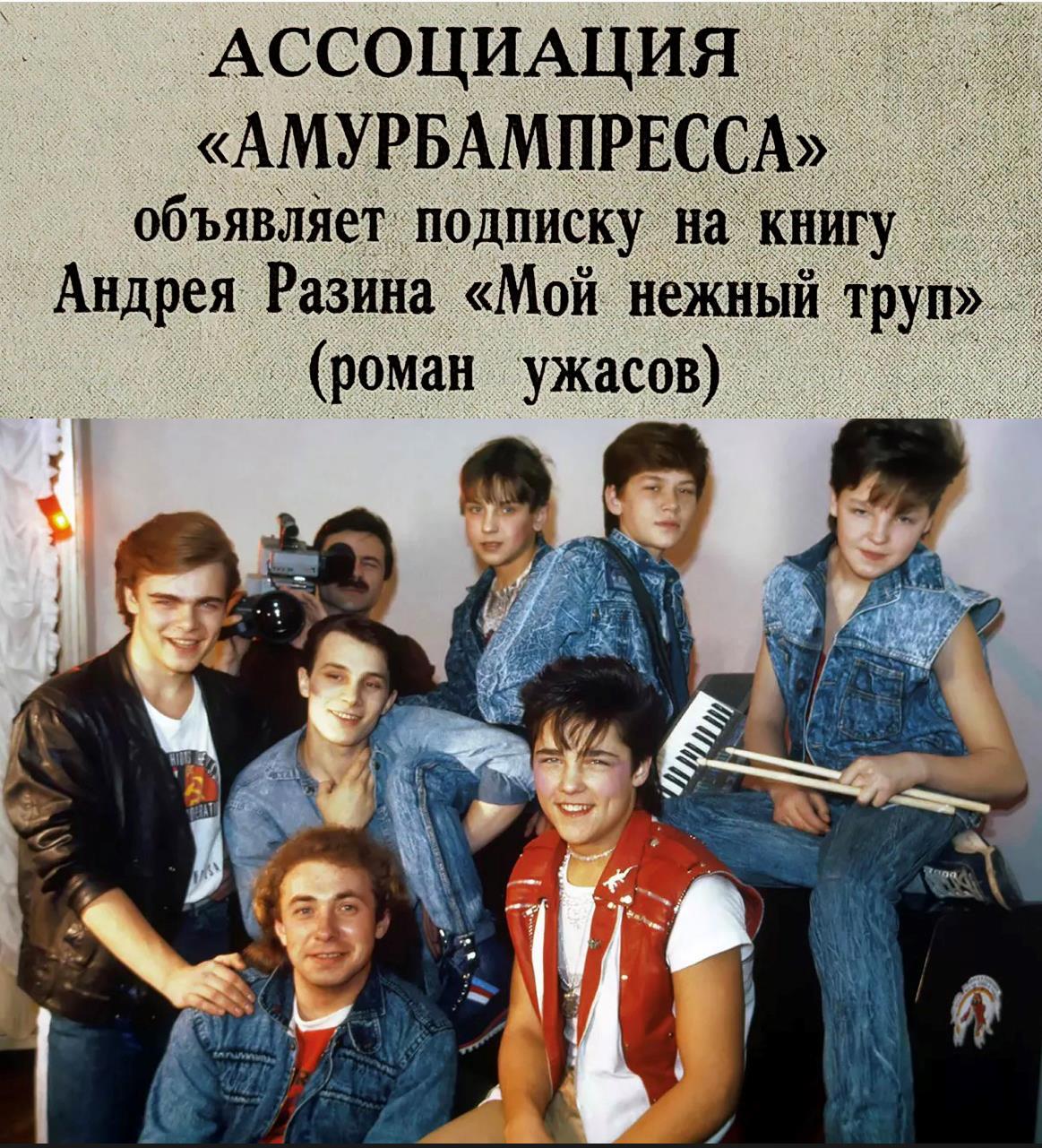 Автор: Андрей ВдовинЛистая подшивки старых дальневосточных газет конца эпохи СССР, я случайно наткнулся на любопытное рекламное объявление. Касается оно литературного творчества Андрея Разина. Да-да, того самого — продюсера «Ласкового мая», которого недавно объявили в международный розыск за мошенничество...
