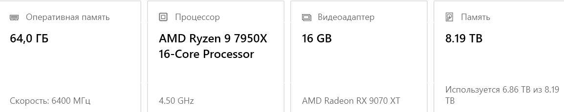 *Примечание: использовал процессор с большим уклоном в игровую производительность(чем тот который реально был куплен и который обошёлся мне дешевле примерно на 30 000, а именно AMD Ryzen 9 7950X).