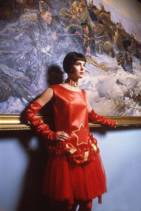 Фотосессия Елены Худяковой из ранних постсоветских лет. Предвестие китча а-ля рюсс, кстати. Но тогда это было посвежее, чем кибер-матрёшки в наше время.
