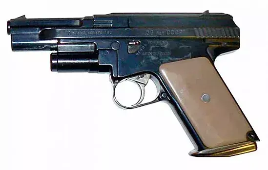 Безгильзовые боеприпасы имеют пока слишком много нерешённых проблем, однако советские конструкторы умудрились сделать пистик под такие выстрелы. Кстати, с ёмкостью магазина в 48 патронов.