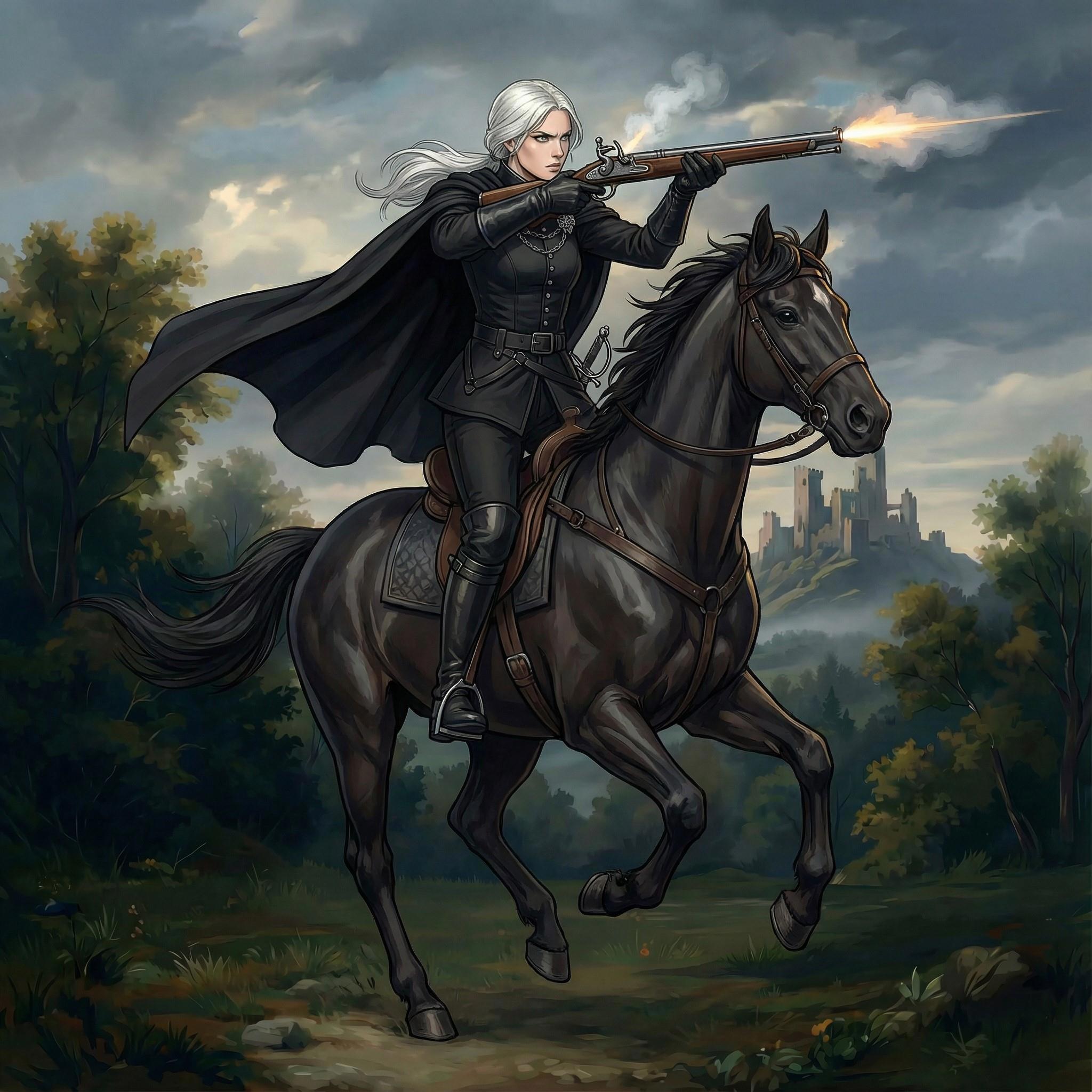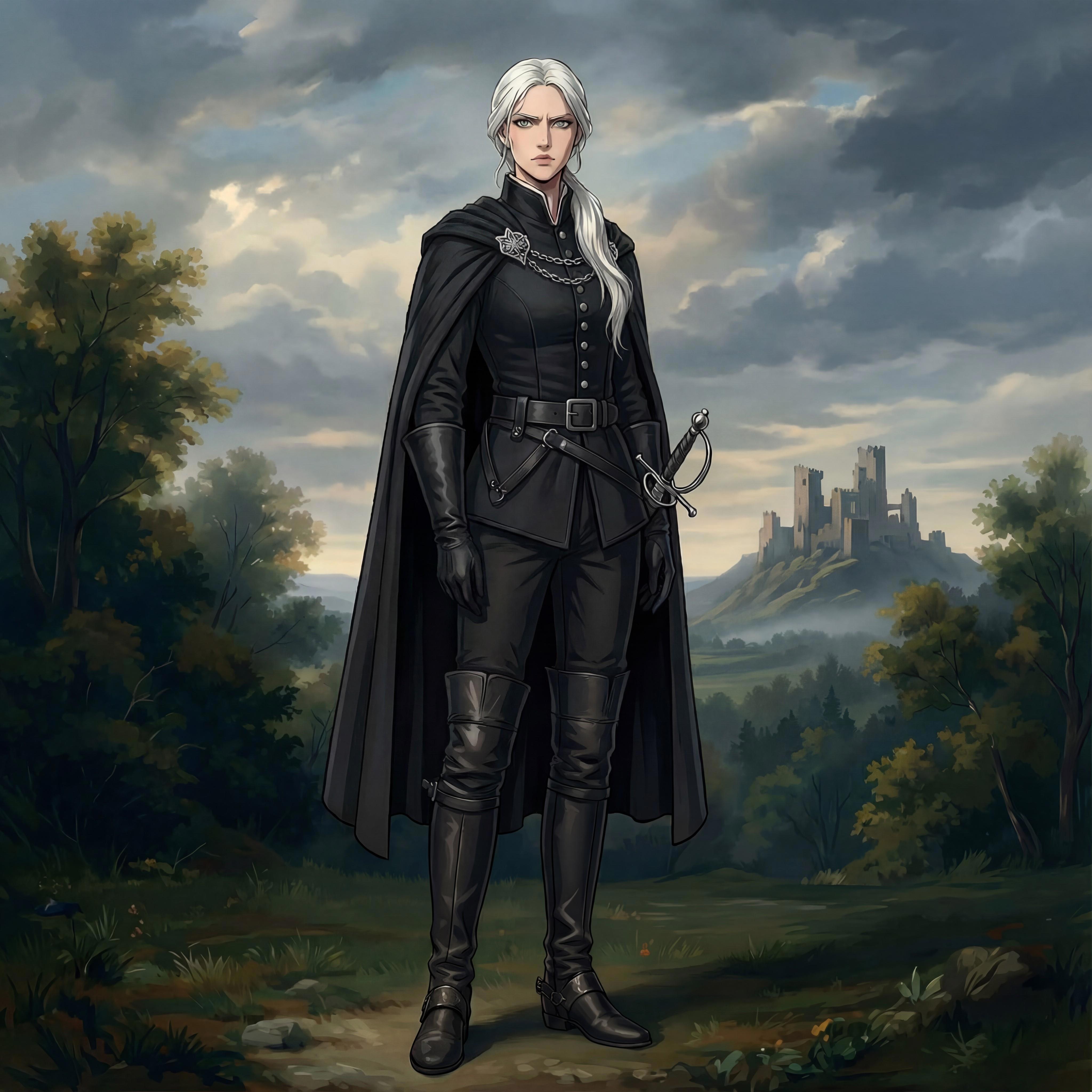 Автор: Руслан БирюшевМне подумалось, что раз прежние портреты леди Марии от Чу были, в основном, в анимешной стилистике, а нейросетка нам подогнала реалистичные, то надо бы и нейросетевой вариант Марии анимешной сделать. И сделал! Заодно попробовал получить образ Марии в чёрном гражданском костюме, который она носила большую часть Дертской дилогии и носит в "Искрах весны". И удалось необычайно здорово, скажу я вам!