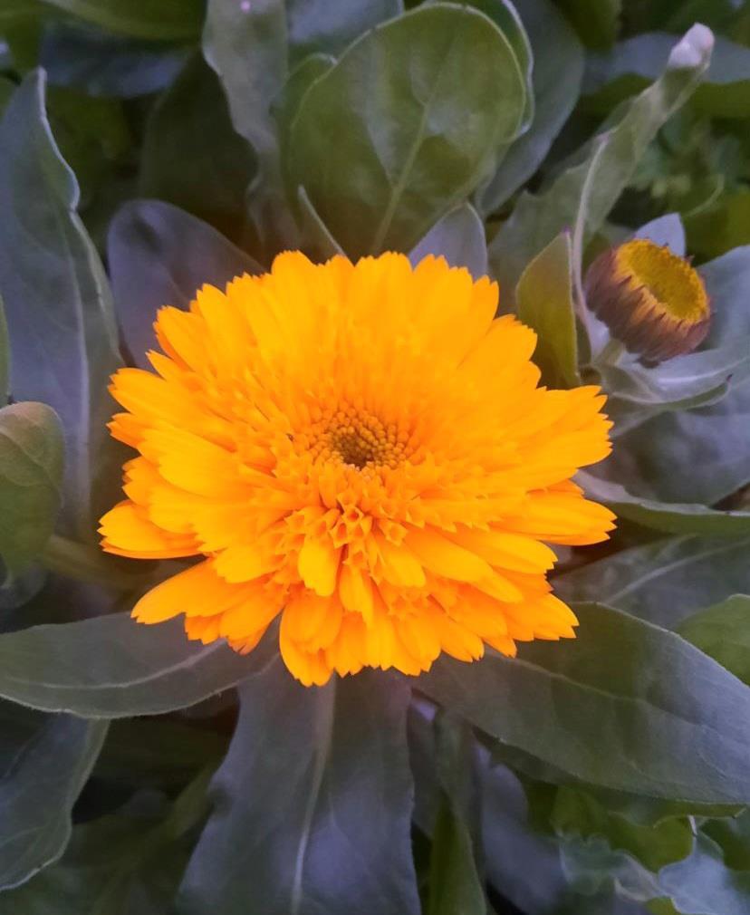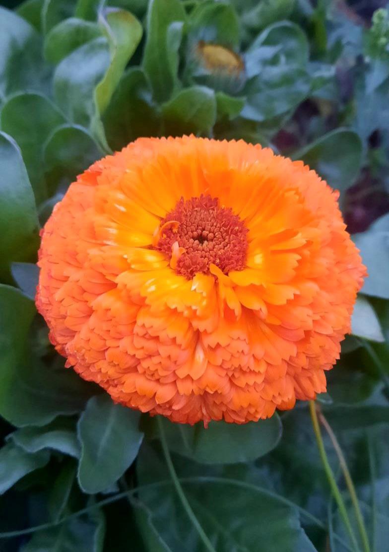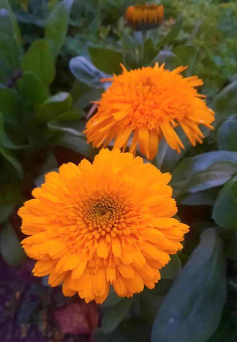 Кустики календулы украсились преогромными цветками, которых я так и не дождалась знойным летом, и сплошь усеяны бутонами.