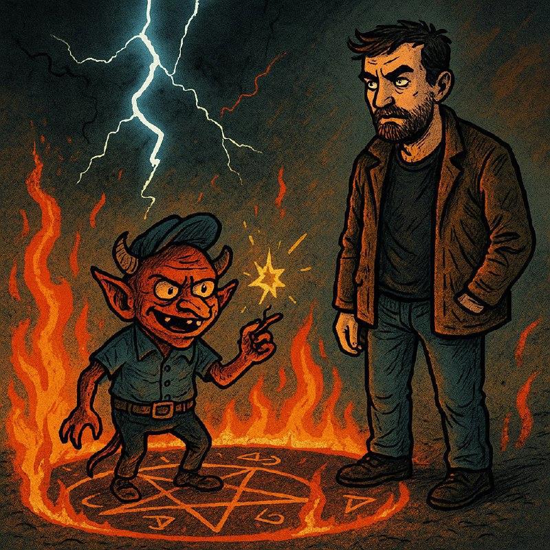 Вместо какого-нибудь адского герцога или succuba с четвертым размером, появляется... ЭТО. Рыжий тип, метр с кепкой, рожа хитрая, пахнет паленой проводкой. Оказывается, тип демона напрямую зависит от качества души. Душа бомжа была «эконом-класс», поэтому и демона мне выдали по тарифу «Бюджетный».
