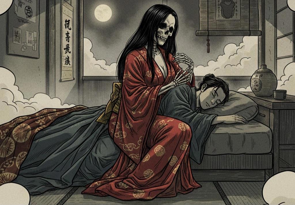 Существует одна японская легенда, в которой воплотился самый мрачный смысл вечной любви. Любовь больше похожая на болезненную одержимость. Речь сегодня пойдет о Хонэ-онна (骨女) — «женщине-скелете», призраке умершей девушки, одержимый памятью о чувствах. Её призрак будет продолжать приходить к своему живому возлюбленному. Сам мужчина и окружающие видят ее чаще всего сквозь иллюзию как красивую даму в прекрасном, соблазнительном и изысканном кимоно, но истинный её облик — гниющий и разлагающийся скелет со зловонным запахом. Она будет являться к любимому каждую ночь. И каждую ночь будет ложиться рядом, жаждущая близости и тепла. А на рассвете — исчезать, оставляя его в холодной и пустой постели в одиночестве. Она будет приходить снова и снова, с каждым днём высасывая его жизненные силы, пока не заберёт его с собой — навеки соединив в мире мёртвых, чтобы смерть наконец не разлучила, а навеки связала их. Делает ли она это специально? Нет. Её сознание застыло в моменте любви, и не догадывается о смерти. Это вечная тоска, принявшая облик призрака. Ничего не напоминает? Очень похоже на мультфильм «Труп невесты».