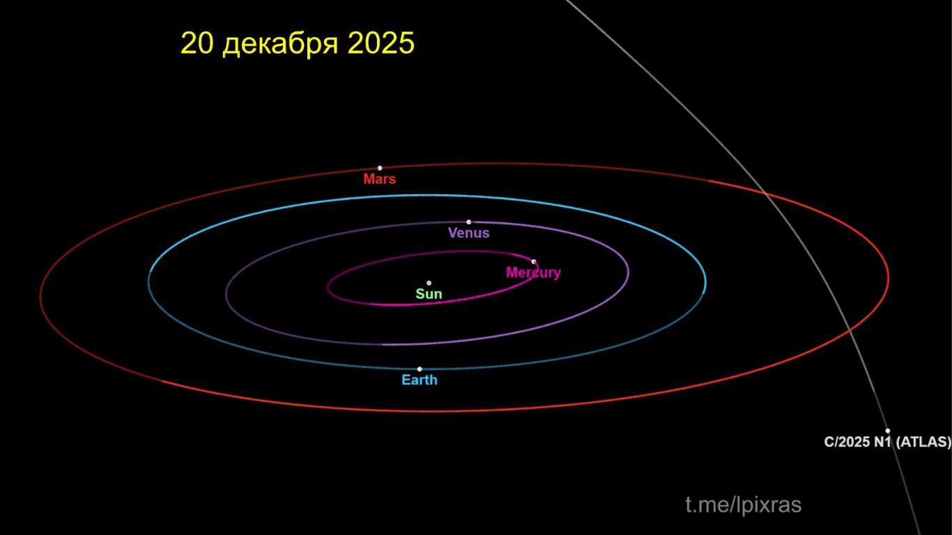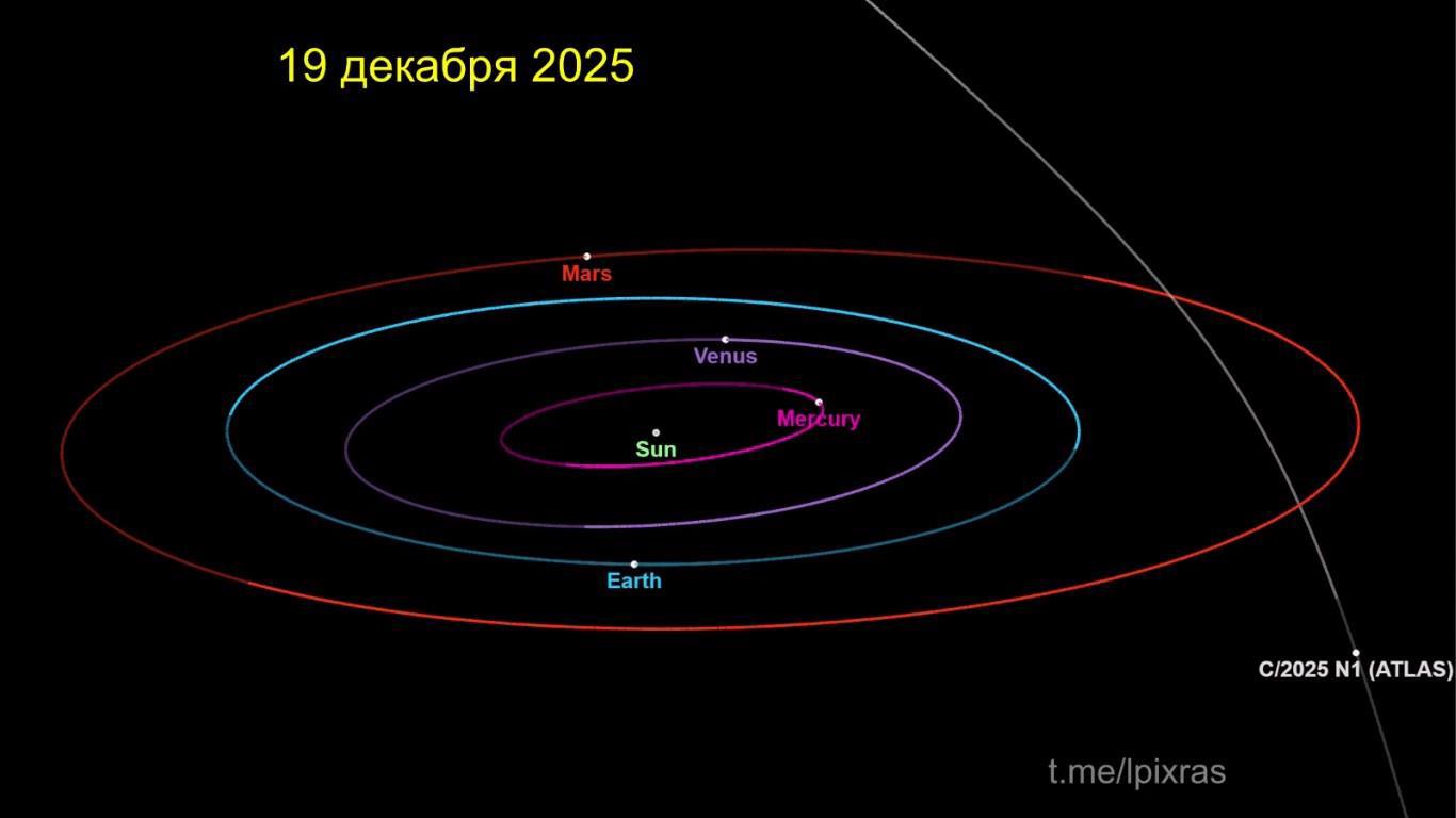 Комета 3I/ATLAS 19 декабря максимально приблизится к Земле. В момент пиковой близости расстояние составит 270 млн км