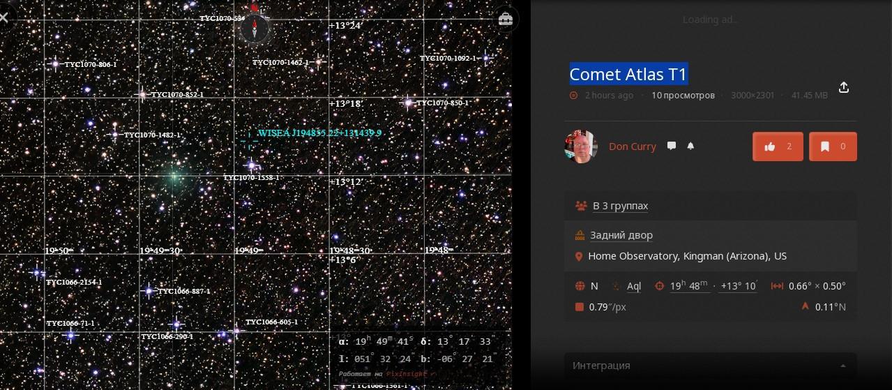 Ну и НОВЫЕ ФОТО 3I/ATLAS с ПОРТАЛА Дом астрофотографии (AstroBin)