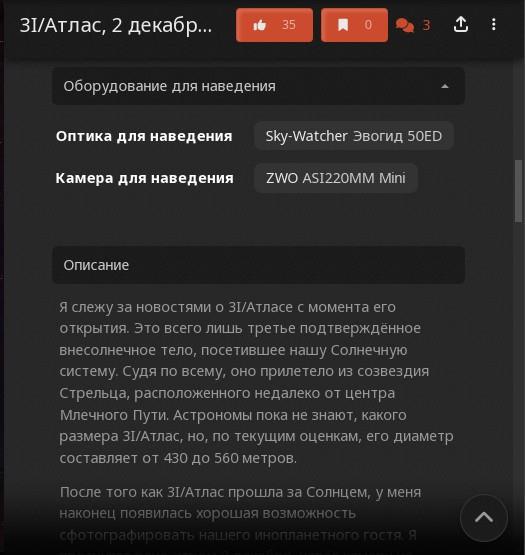 Этот наш БлогПост является своеобразным продолжением нашего же блога от 26 ноября в 19:19: Межзвездный объект «3I ATLAS» - не будет виден в бинокли и любительские телескопы - https://author.today/post/741434 и