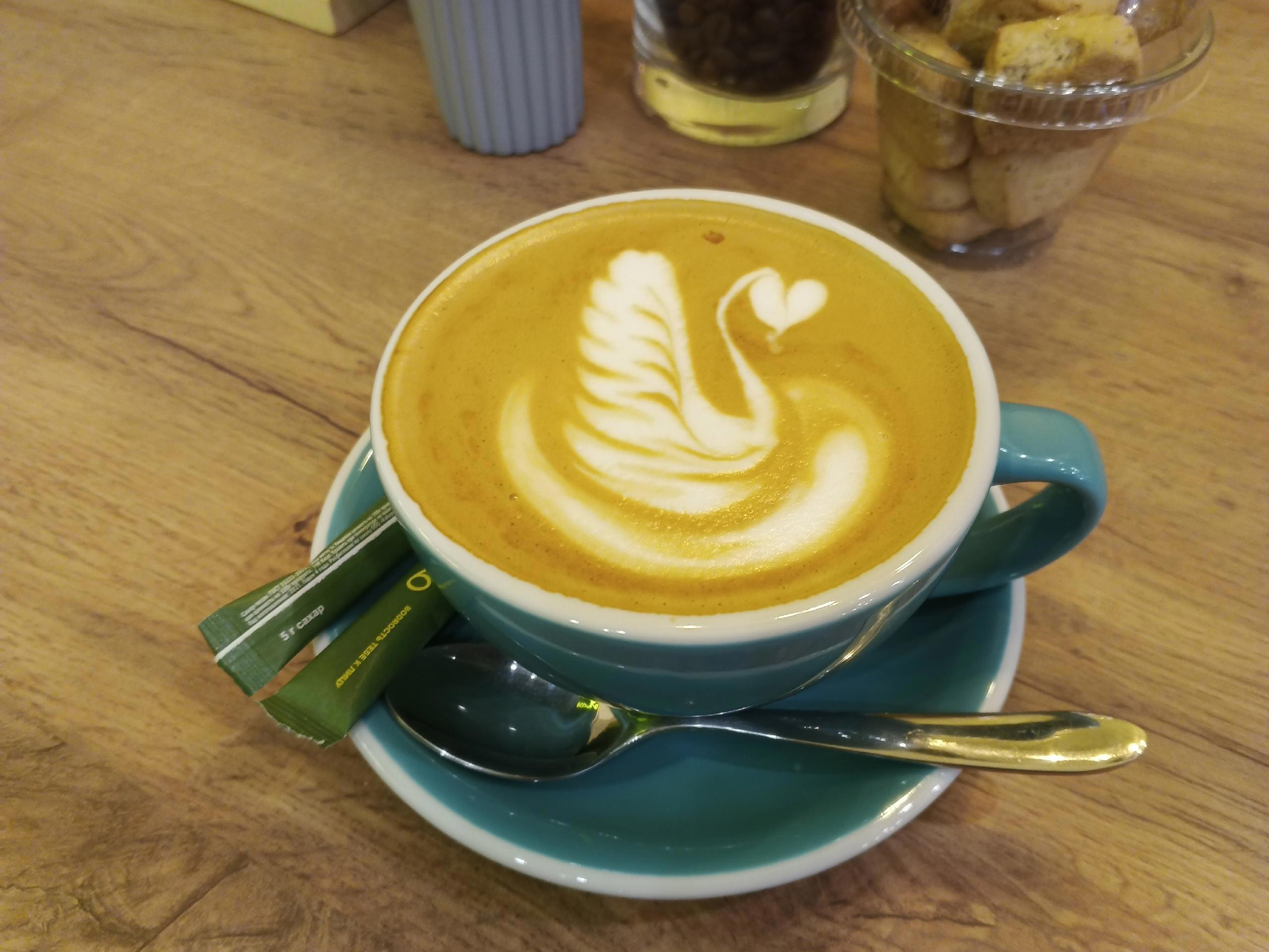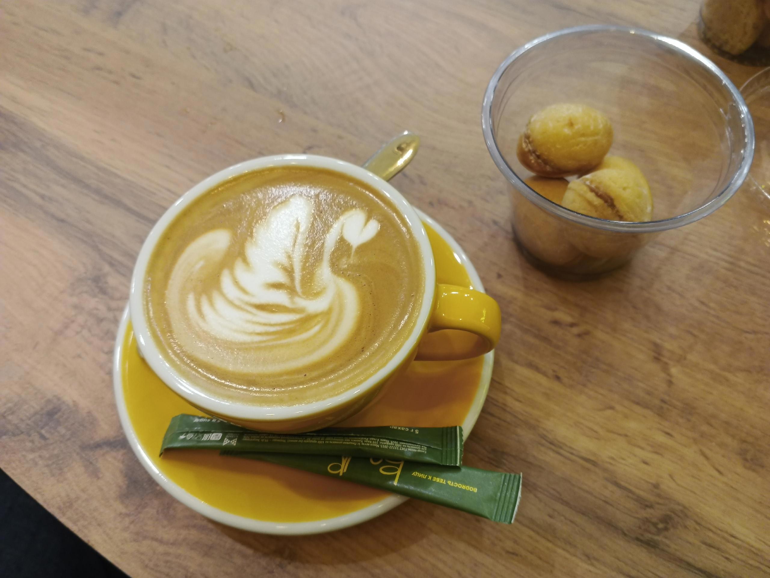 А потом был божественно вкусный и горячий кофе. Отличный сорт, прекрасная обжарка. А ещё орешки со сгущёнкой и печенье с орехами. И рисунки на кофейной пене, это просто произведения искусства.