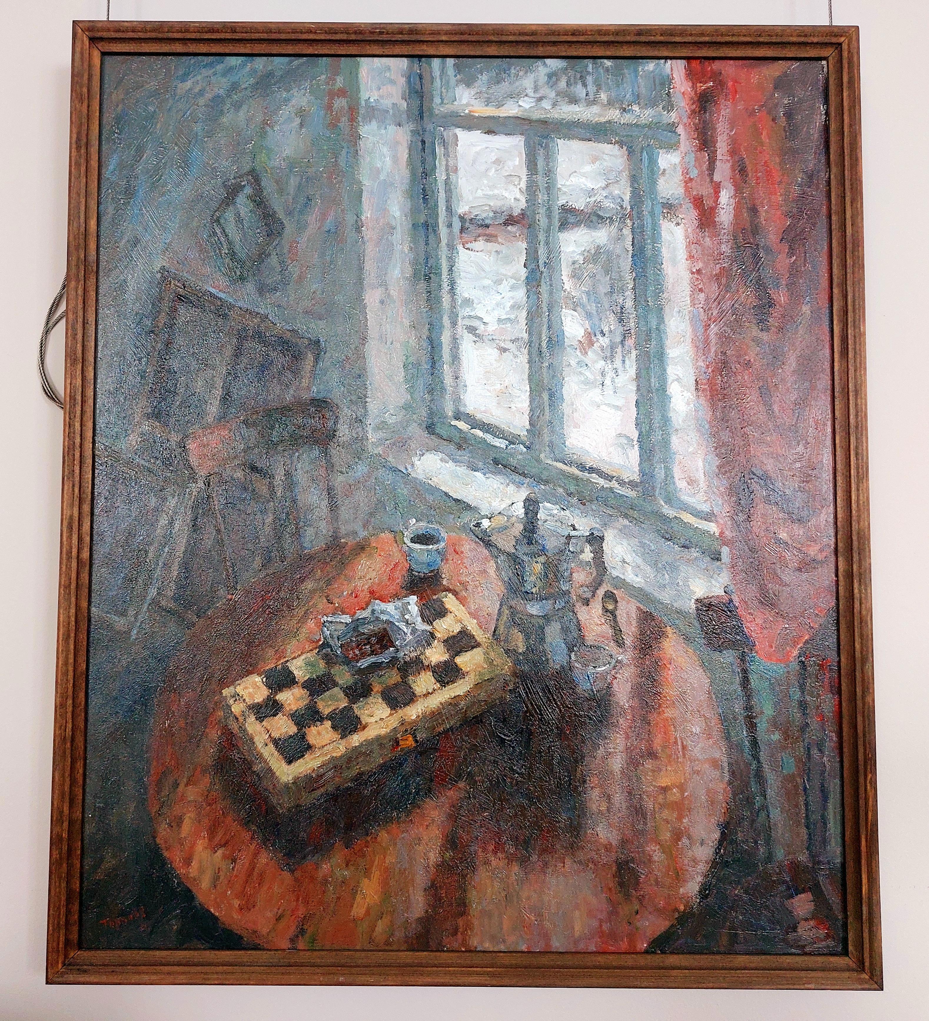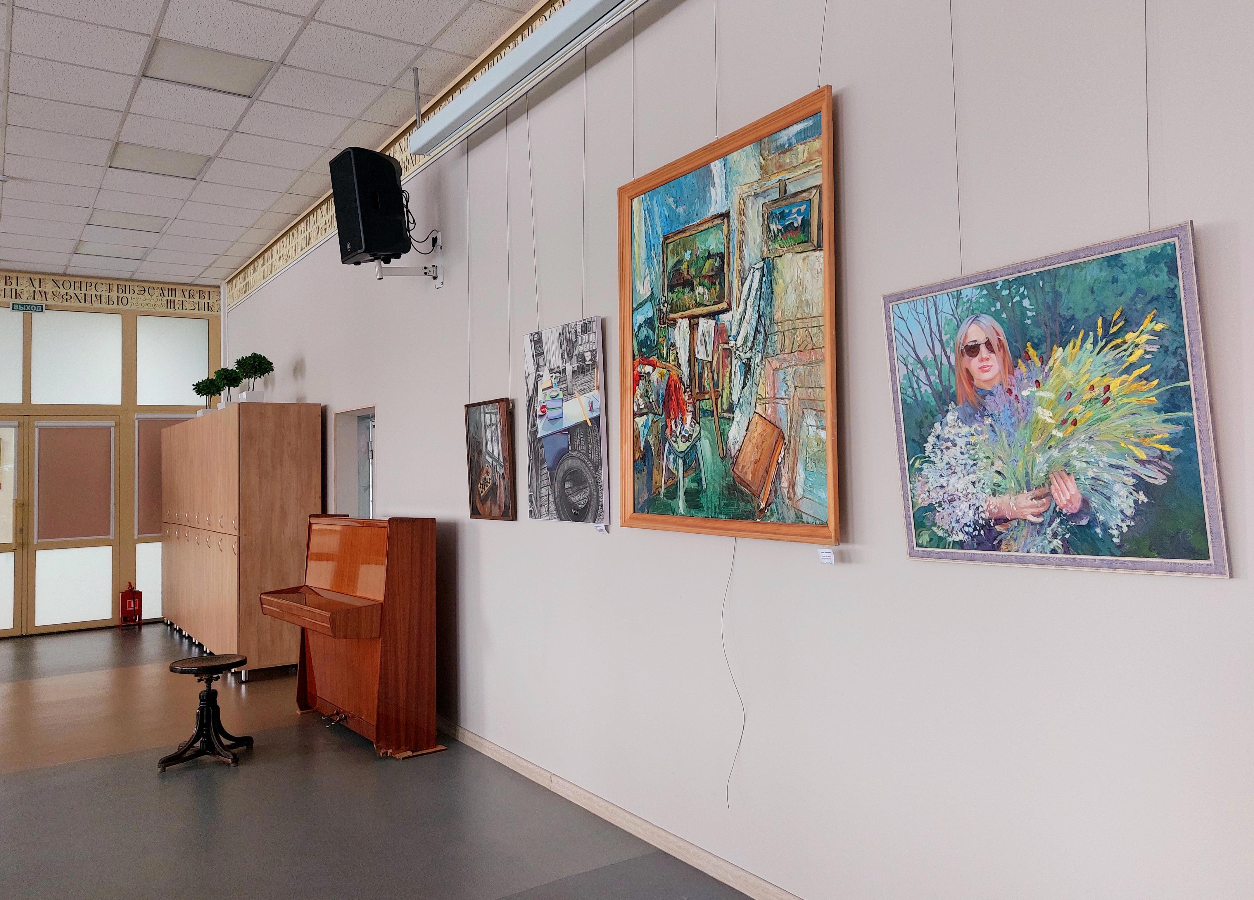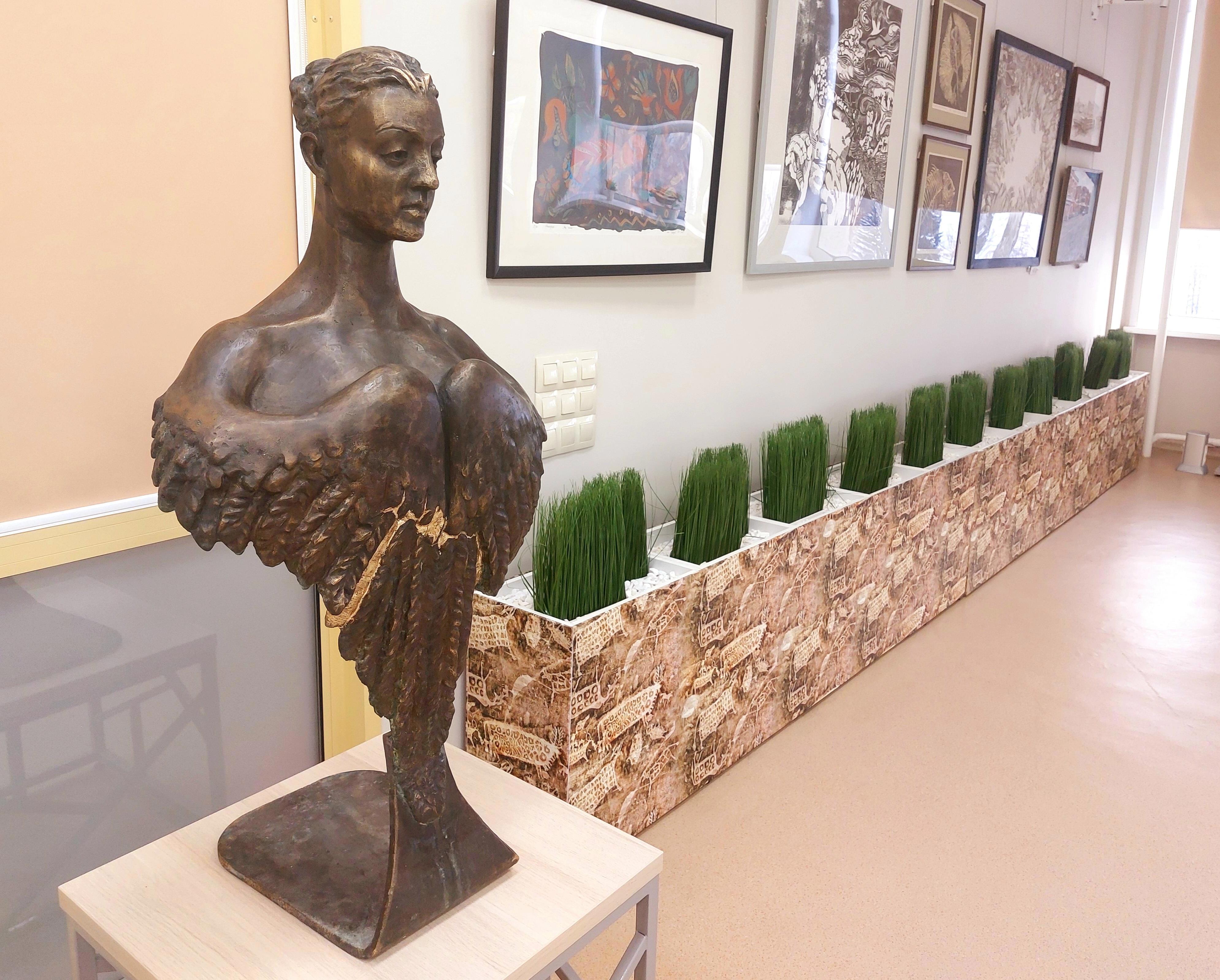 А в интерьерах центрального зала главной библиотеки Алтайского края нынче приятное обновление - выставка интересных картин + одна великолепная скульптура и ещё есть уникальное панно - флорентийская мозаика "Ночной страж" художницы Ксении Головиной...