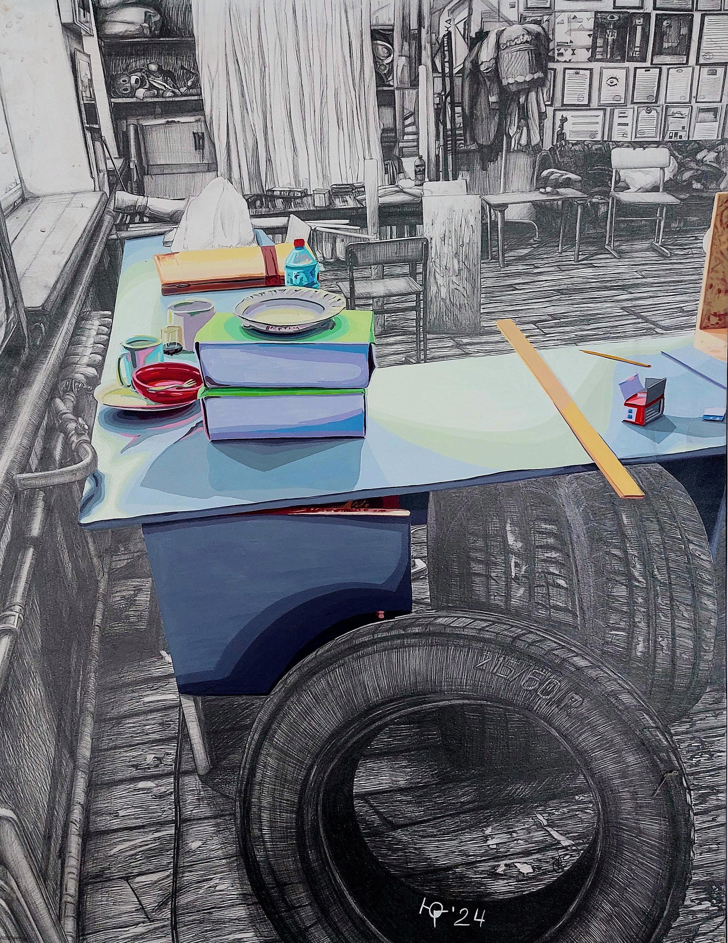 Эта работа Юрия Гребенщикова называется "Где хранится летняя резина"