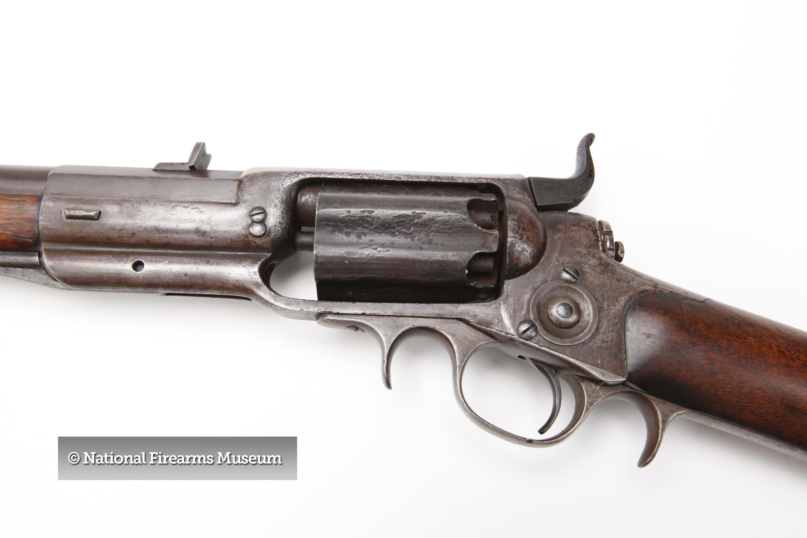 Заметим, это не он один был такой умный, «идея витала в воздухе» и револьверные ружья пытались делать разные люди – вот, например, один из вариантов по т.н. системе Миллера. «По меньшей мере пятнадцать оружейников изготовили револьверную винтовку по патенту Миллера, и, по оценкам, было выпущено всего несколько сотен экземпляров.»