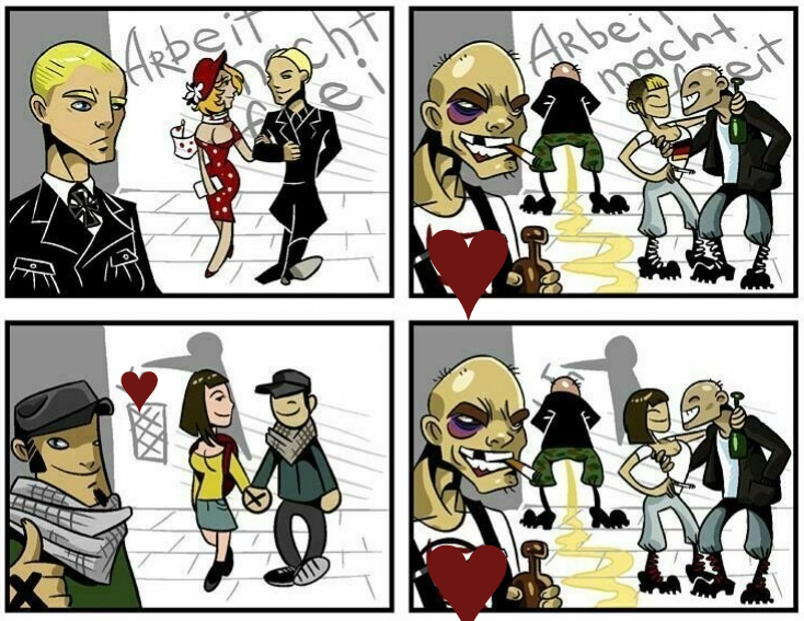 Шарпи (второе название левых скинов) херачат тех, кого они считают врагами непохожих, и относительно недавно один из застрелил Чарли Кирка.