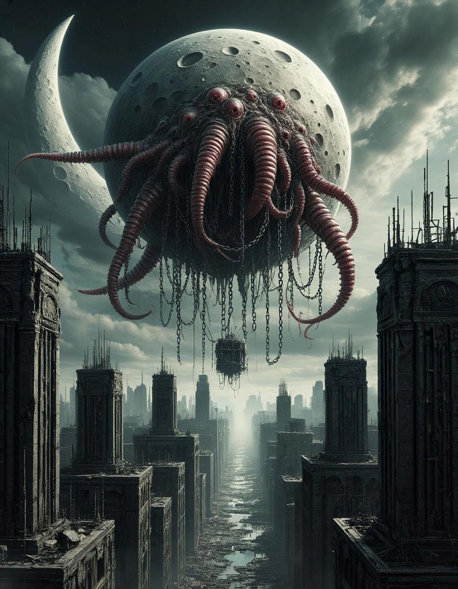 7. Апокалиптический пейзаж — мир изображён как мёртвый, гниющий, наполненный руинами и мутировавшими формами жизни.