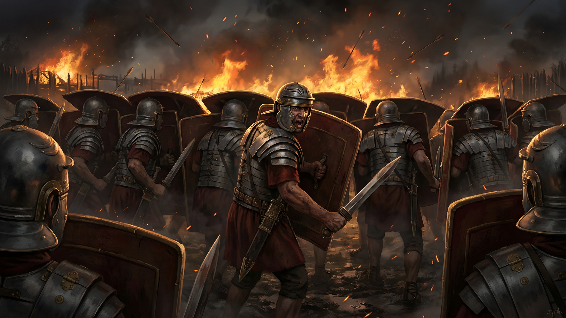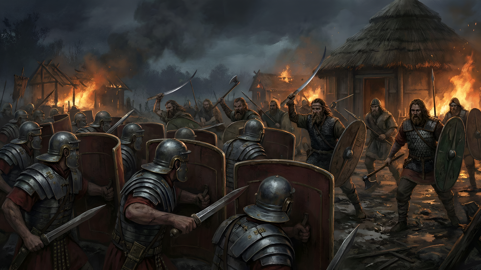 Варвары схватились с легионерами по всему фронту. Продвижение замедлилось, а вскоре римляне и вовсе остановились. Сзади напирали свои, спереди враг.