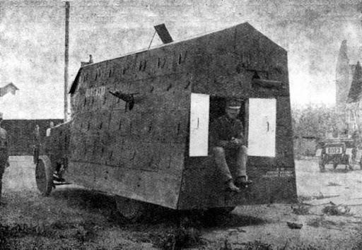 Три грузовика также были обшиты щитами со стальными листами. Два из них были также вооружены пулеметами. Щиты были съемными, чтобы можно было устраивать подобие вагенбурга при вынужденных остановках. Один из броне-грузовиков был танкером - вез бензин, так как из-за перегруза скорость машин падала, газ давили по полной и расход топлива получался большим.