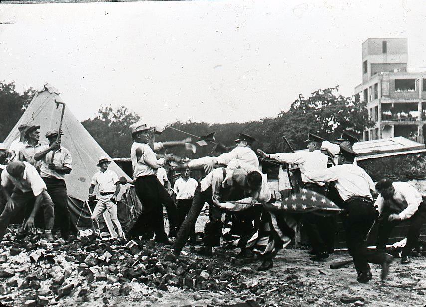 28 июля, по требованию президента Гувера, полиция приступила к очистке территории. Когда ветераны воспротивились, полицейский Джордж Шинолт застрелил из револьвера Уильяма Хушку и Эрика Карлсона.
