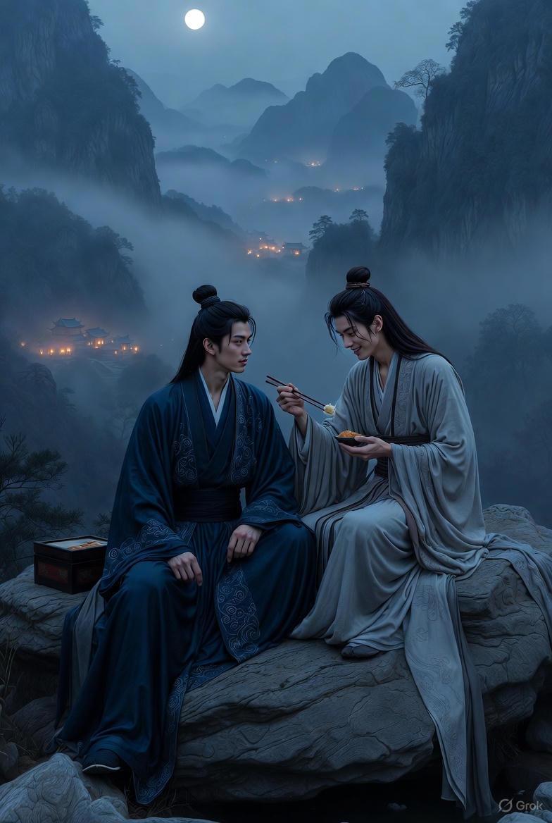 Гун Цзыси, как младший, который должен обращаться к Су Ижэню исключительно «шисюн», также использует более официальное «мастер Су», что указывает на словесную игру между ними: один пожурил, но больше для порядка, а второй отшутился.