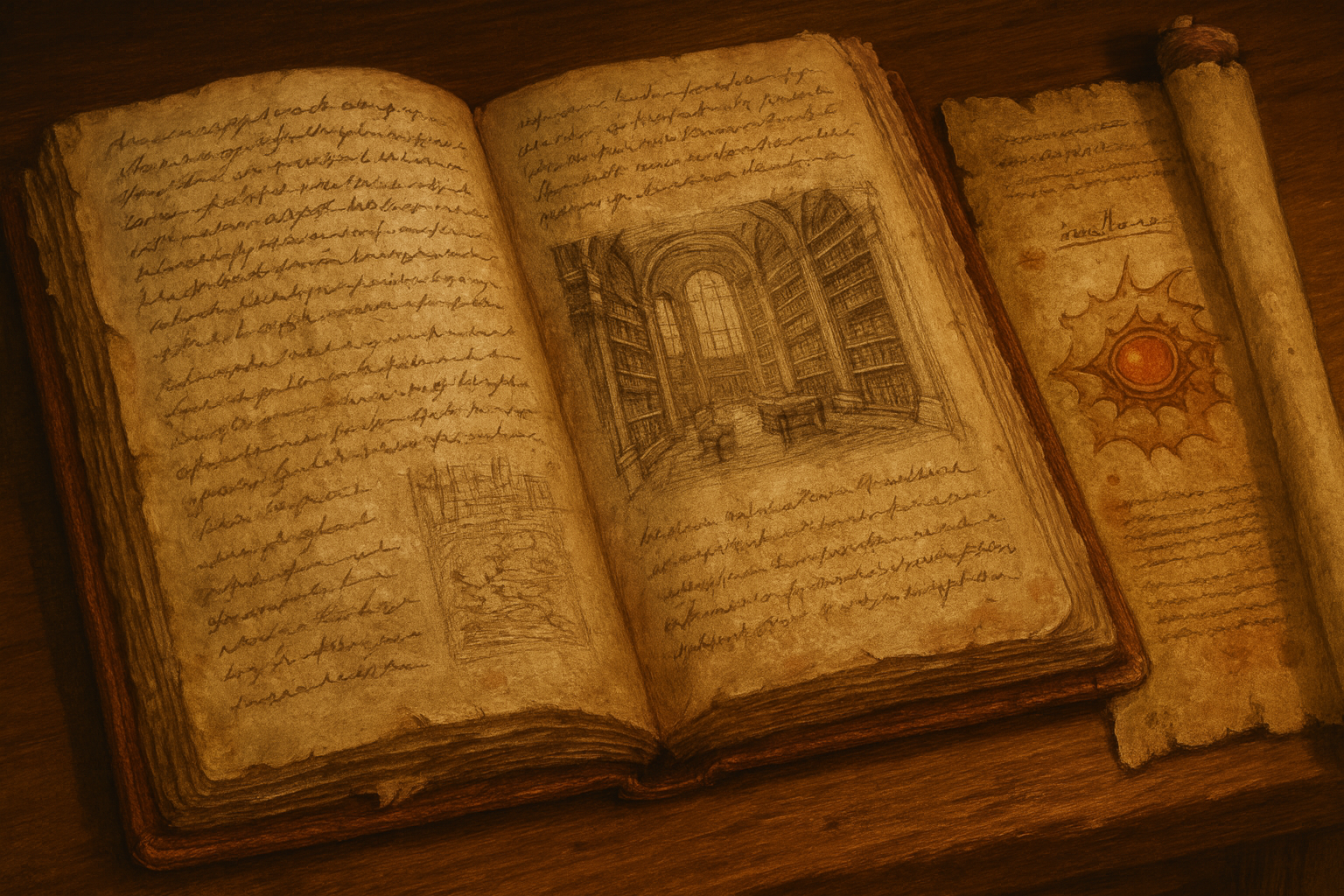 Пока валдринги тусили у орков, алхимик отправился обратно в Гарнак. И вот что было бы, если бы он вёл дневник. Тут его записи о посещении главной библиотеки и находка оттуда - свиток, в котором рассказывается про артефакт.