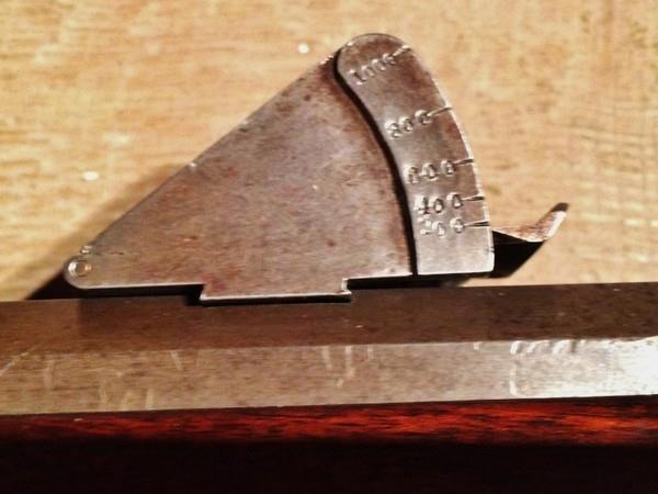 2) Регулируемый секторный прицел, насеченный на дистанции от 200 до 1000 schritt (это буквально "шаг"), т.е. от 160 до 800 метров.