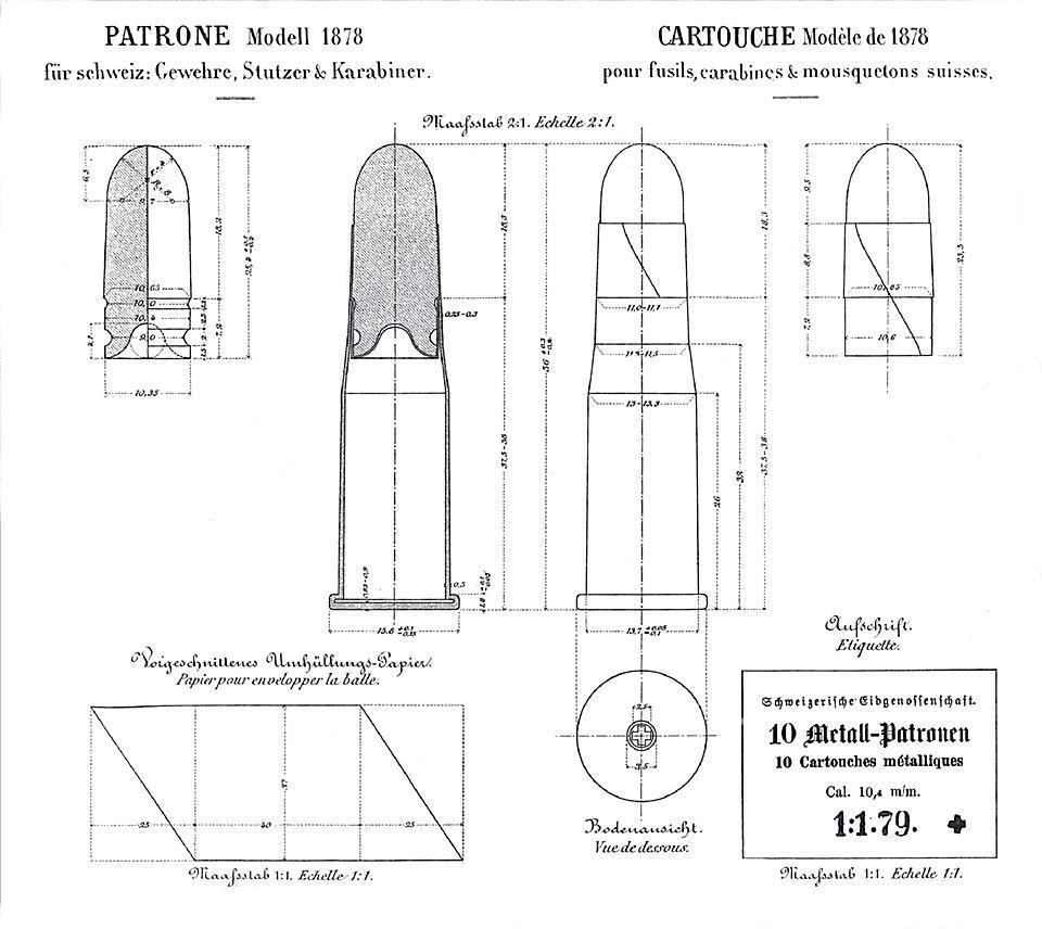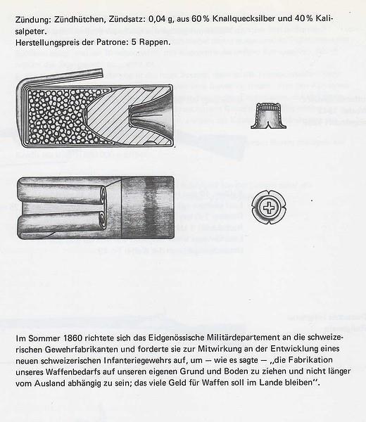 Фактически это была спортивная целевая винтовка, оснащенная штыком. Егерское оружие предыдущего поколения было вполне в рамках тенденций обычного "мушкетного" калибра. В то время, как вся Европа все еще не воспринимала армейское оружие калибром меньше 17-18 мм, швейцарцы традиционно (но тогда это был внове) не стали обращать внимание на чужое мнение, провели испытания и сделали винтовку калибром 10,4 мм, во всем мире подобный калибр получит распространение спустя 15-20 лет....Вообще, кроме калибра, винтовка объединила следующие не характерные для военного оружия черты и инновации: