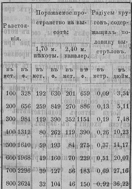 Таблица стрельбы из винтовки Веттерли на разные дистанции.
