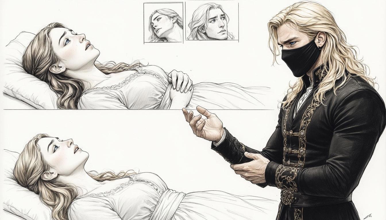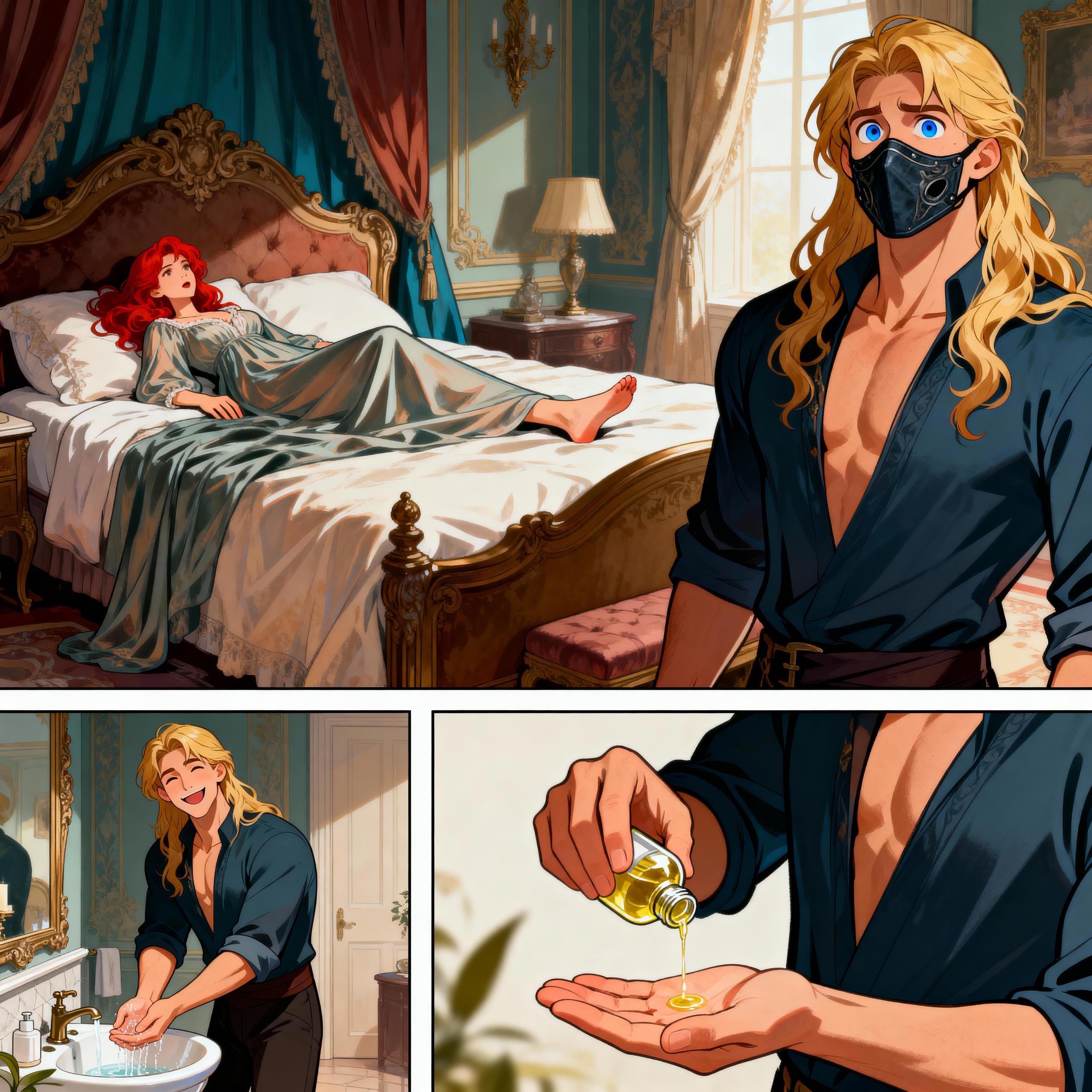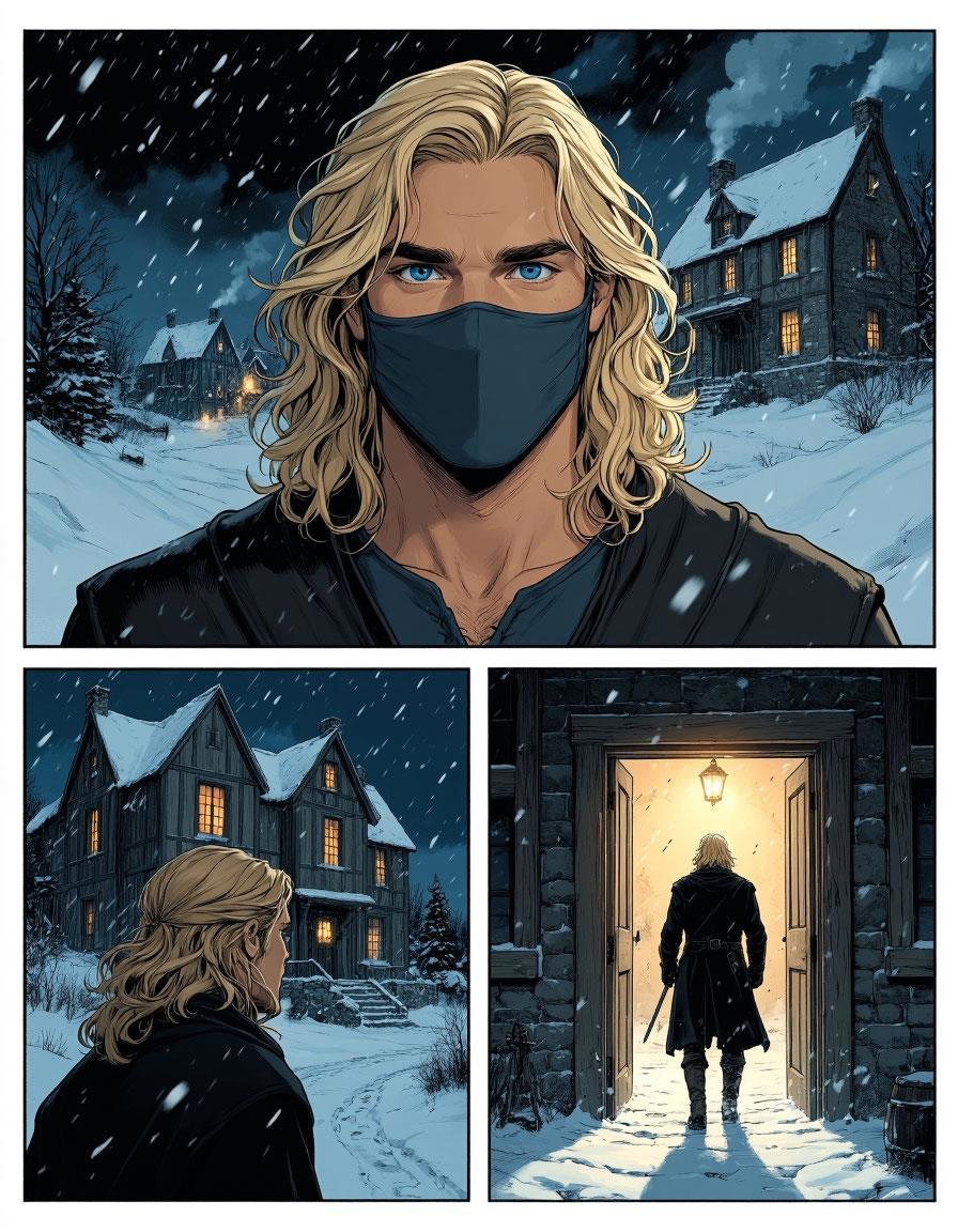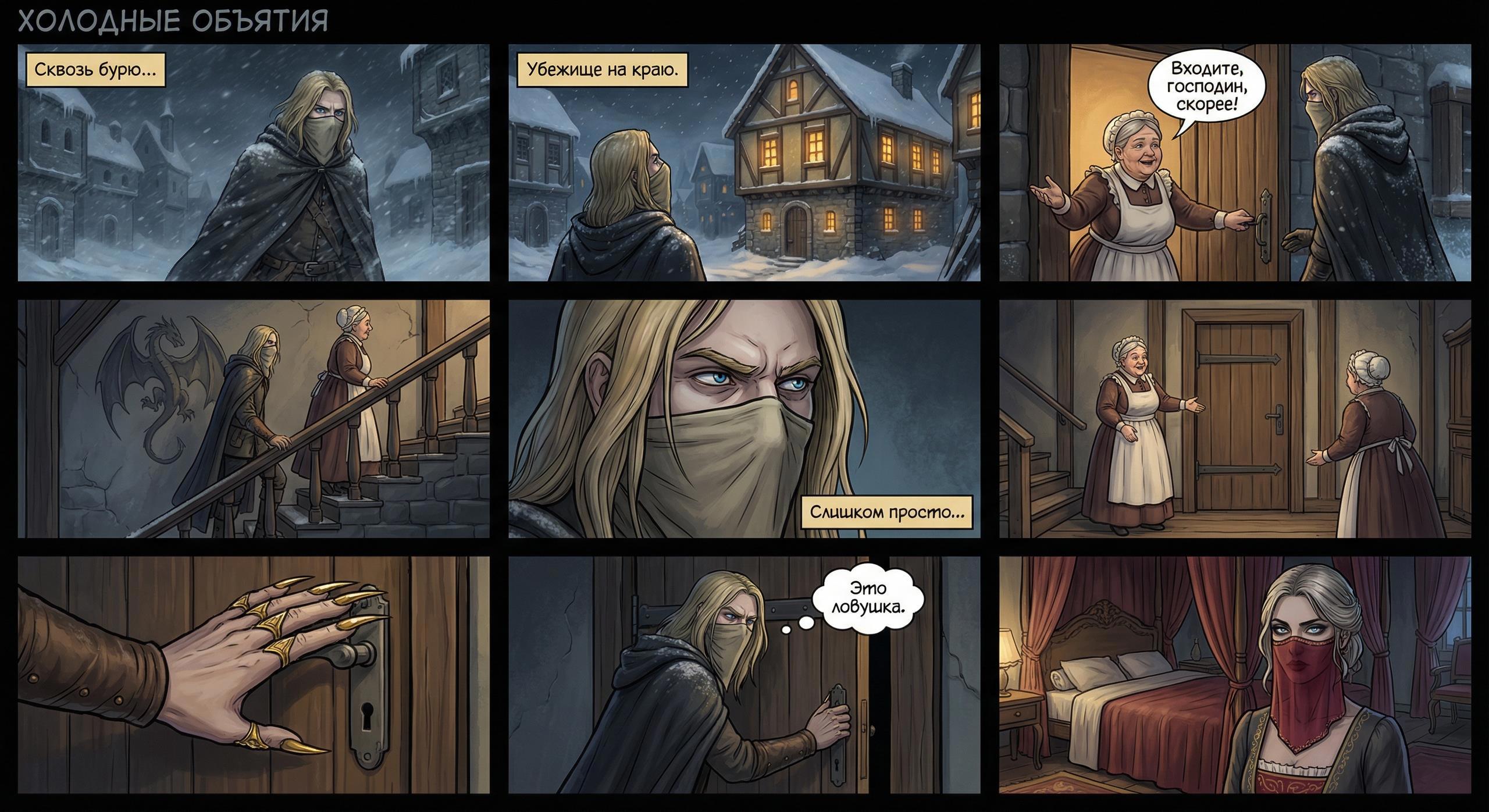 Дальше я предложила нейросетке сделать комикс, и она, знаете... К моему удивлению, кое-что изобразила. Но никак не хотела ставить служанку в двери.