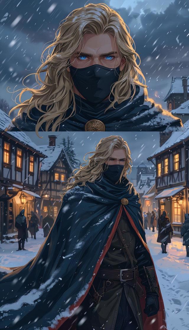 Мужчина в маске, идущий через метель.