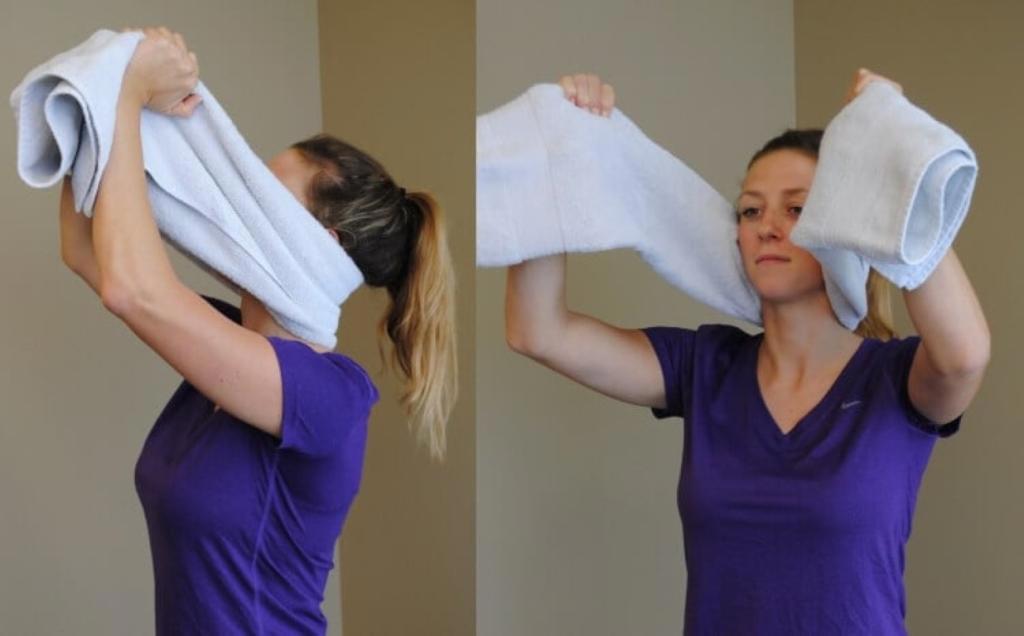 головы и шеи, берем свернутое вдоль полотенце за два конца и начинаем медленно растирать