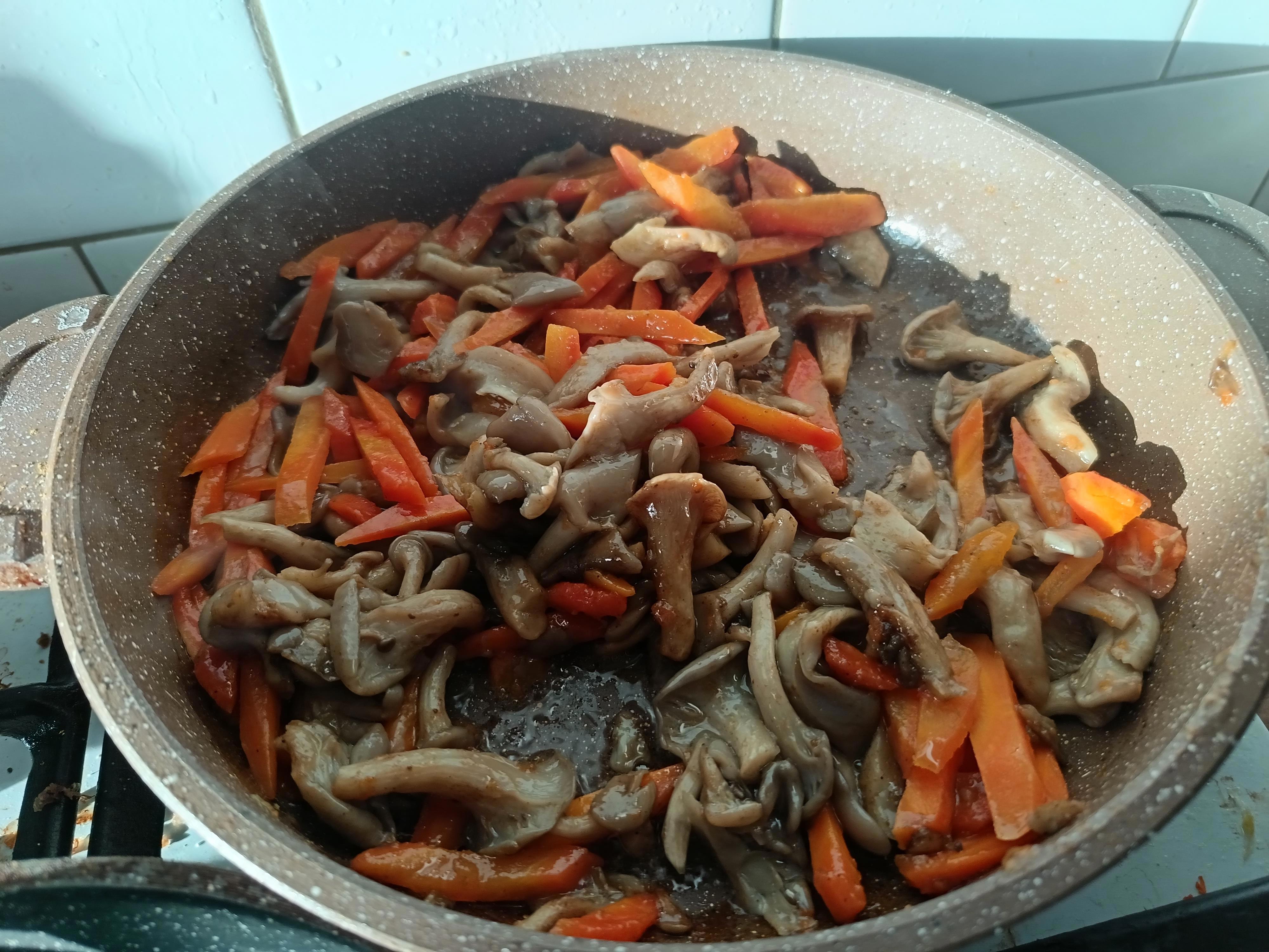 Но мне повезло, на этот раз я попал на вешенки)) Они мне нравятся больше - и однажды попробовав сделать вешенки с морковью (резал, как в плов), теперь регулярно делаю их с морковью.