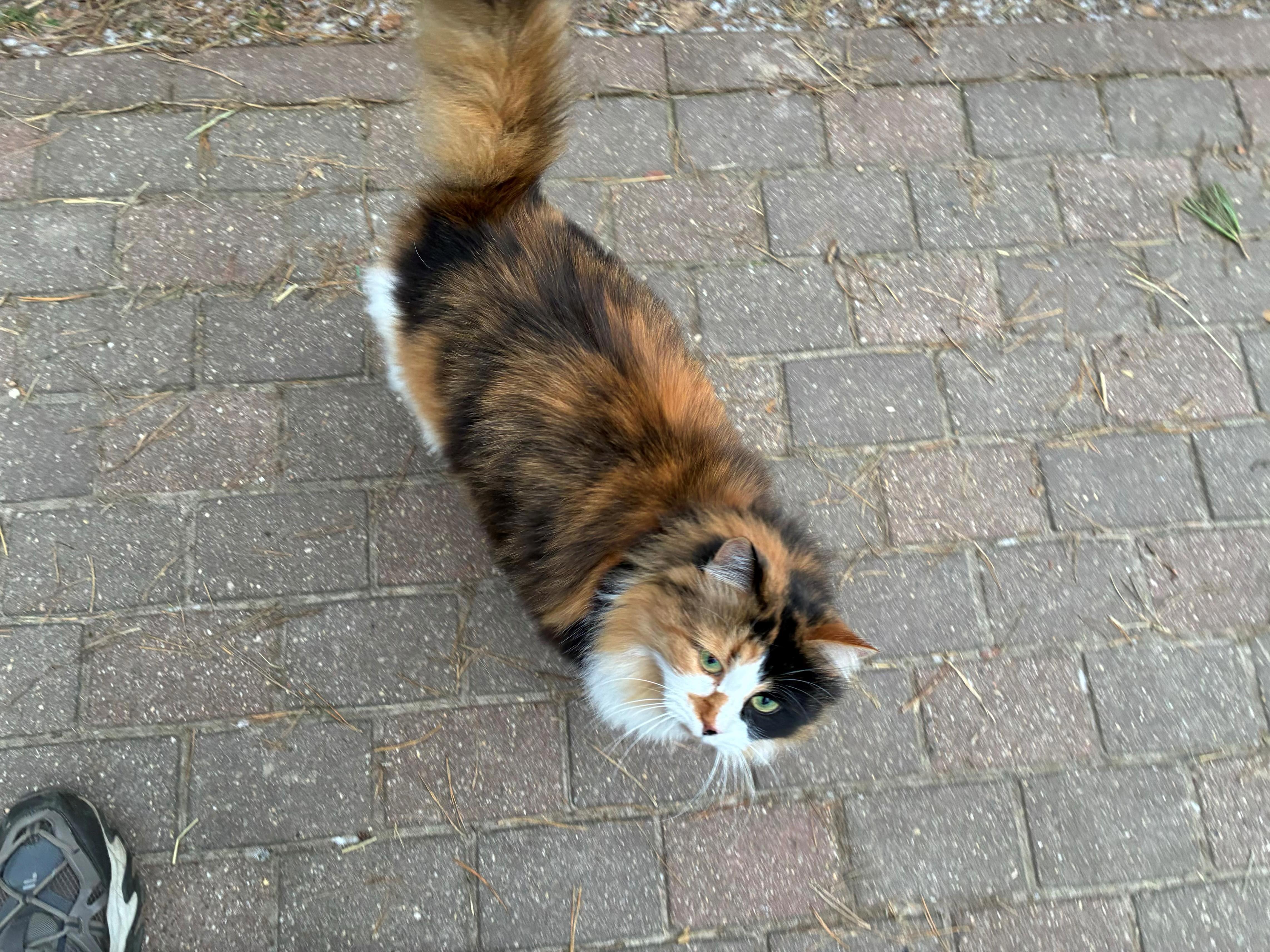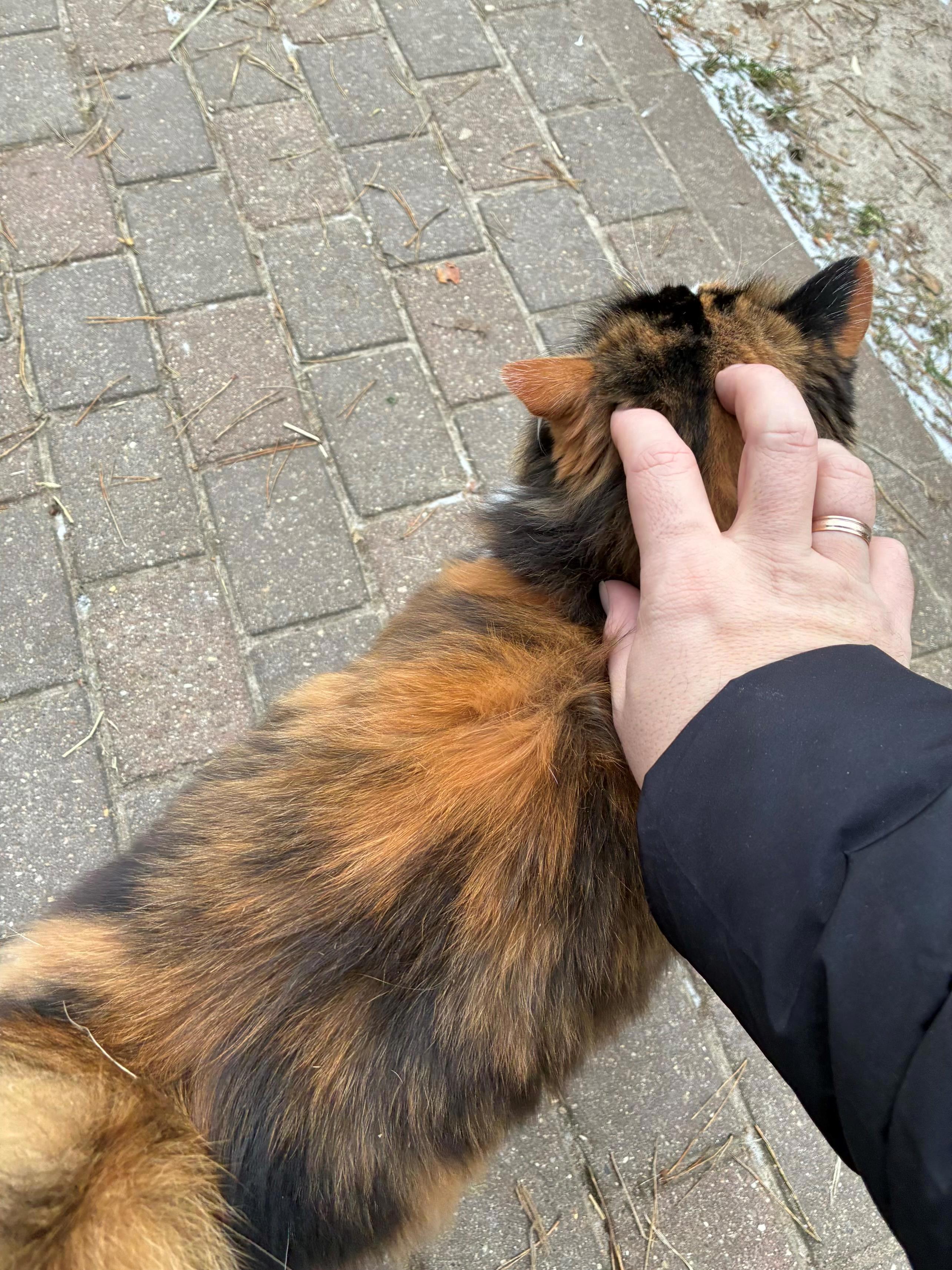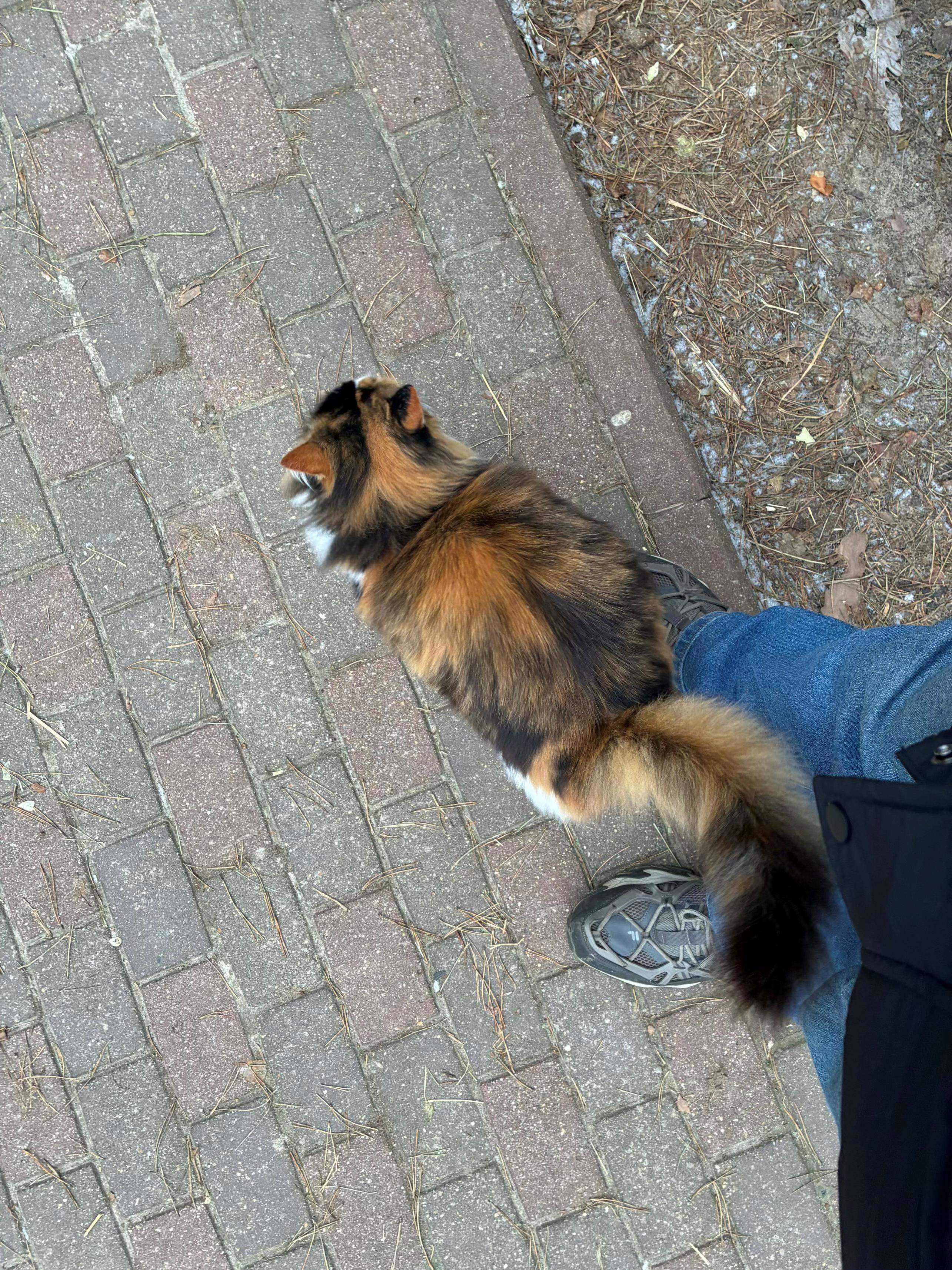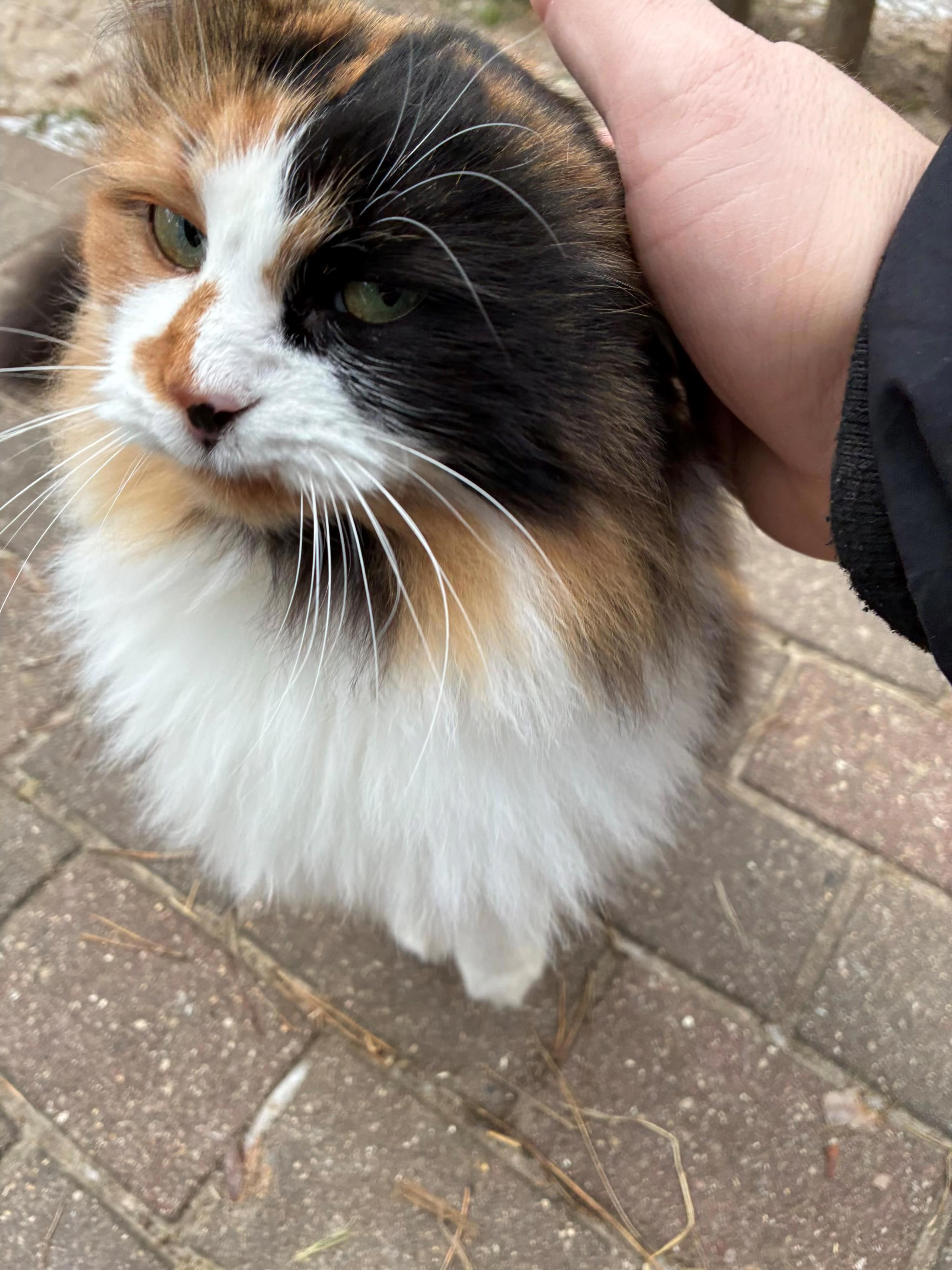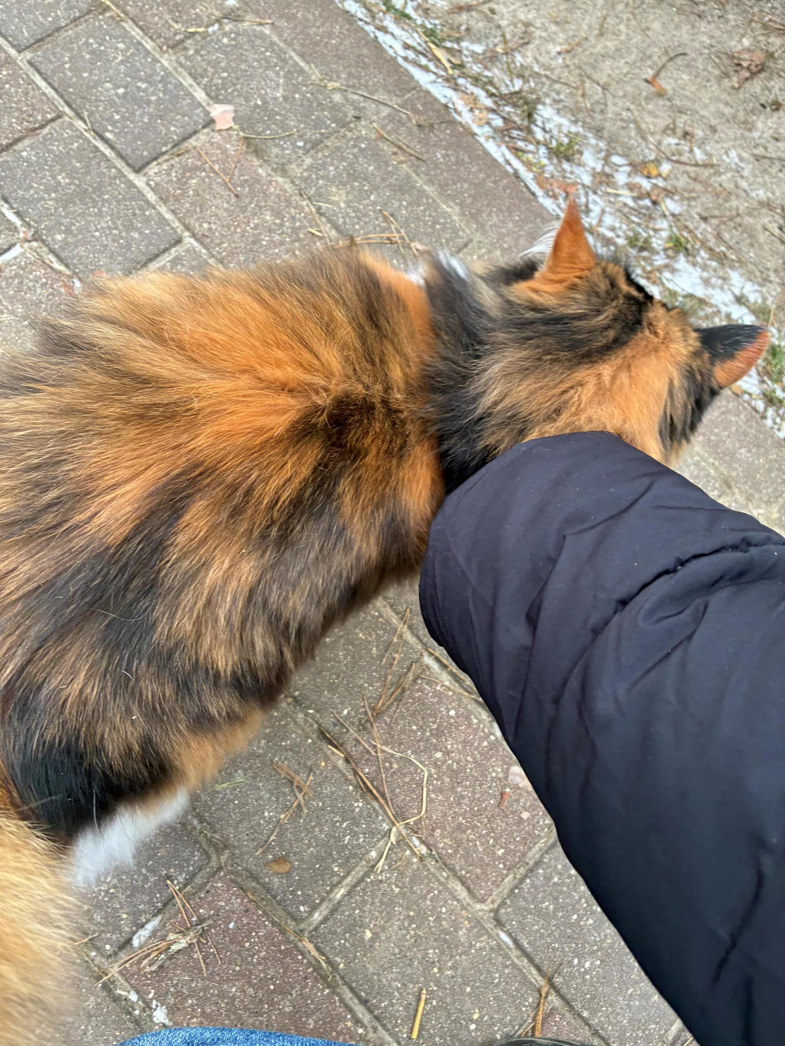 Подозреваю что это чей-то домашний кот, которому хозяева дозволили гулять самому по себе, иначе бы он хрен бы позволил себя погладить. А этот сам ходил от прохожего к прохожему и напрашивался на ласку.