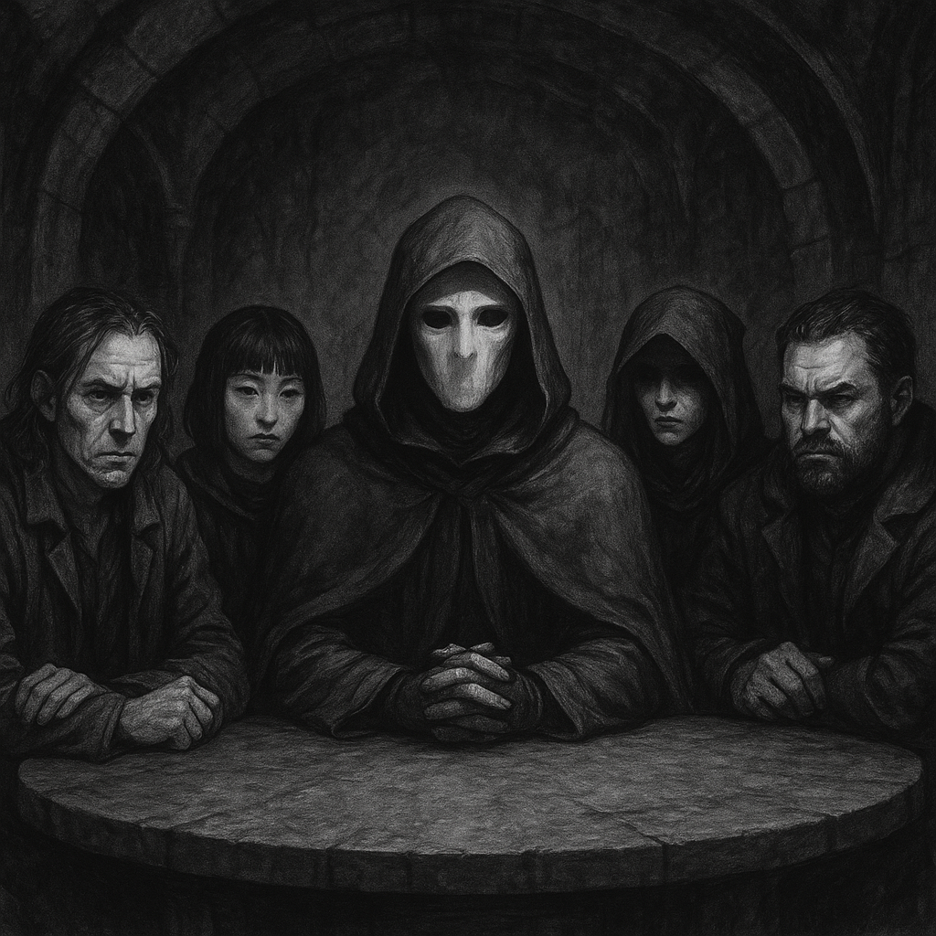 В огромном зале, обвитый заржавевшим чугуном с висящими сталактитами, где была нацарапаны круги, перечеркнутыми линиями и буквами «L», символами организации «Легион», символ который разные Министерства магии разных стран отказывались признавать, а если и признавали, то боялись. Факелы горели мертвенным белым пламенем, не давая тепла, а каждый звук казался здесь громче, чем должен: капель воды, скрип сапог, шепот заклятий и прочих разговоров. Магия осела в этих тоннелях, как пыль. Она пропитала стены, превращая их в хранилище воспоминаний и страха. Те, кто спускался сюда впервые, ощущали невидимое давление — словно сам город сверху давил на них своей тяжестью, а под землей жили не люди, а сама память войны, оставшаяся без хозяев.